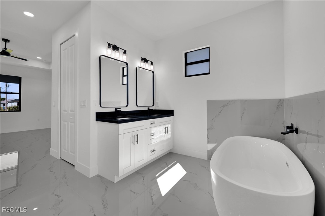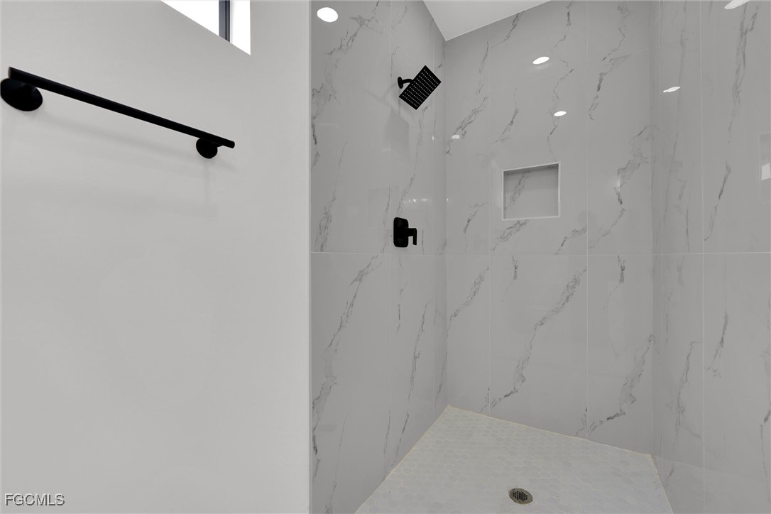 Inside, every detail has been thoughtfully designed to impress. Gleaming white ceramic tile flows throughout, while sleek quartz countertops elevate the kitchen and baths. High-end stainless steel appliances, modern designer lighting, and custom finishes make this home feel like a showcase. A tiled lanai extends your living space outdoors, creating the perfect spot to relax or host gatherings. Furnished photos are virtually staged to help you envision your dream setup.