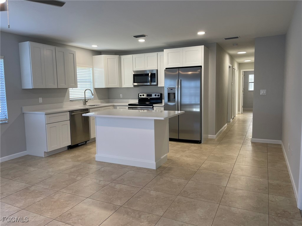 Beautiful 2 bedroom, 1.5 bath, 2nd floor, end unit condo for rent in S. Cape Coral. Tile floors throughout, SS appliances, Quartz countertops, ceiling fans in all rooms, new A/C 2022. In unit washer and dryer! Great location off Coronado within walking distance to stores, restaurants, entertainment & bus stops. Sorry, NO PETS! This home rents for $1400/mo. WATER is $50 flat fee per month!