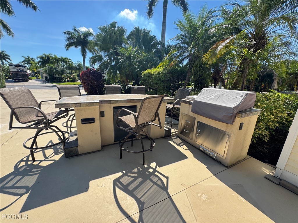 Lot 69, If you are searching for a lot that truly makes a statement, look no further than this exceptional corner property. With common space both beside and behind you, this lot offers a rare level of privacy while still being surrounded by lush green grass that flows around the side and back of the property. The expansive outdoor living area is ideal for entertaining or simply soaking up the Florida lifestyle all winter long. The two-piece outdoor kitchen is a showstopper, complete with a built-in grill, refrigerator, and seating for six at the bar, perfect for hosting friends and neighbors. The coach house provides versatility, with enough room for a cozy couch for afternoon reading or a functional office setup. Washer and dryer hookups are already in place, and a stylish water closet with sink adds both comfort and convenience. Just steps away, the walking bridge leads you directly to the resort’s vibrant pool complex, where you can float the afternoon away, challenge friends in a game of bocce, shuffleboard, or sip on a refreshing pina colada at the poolside cabana bar. The dog park is nearby for your furry companion, adding to the ease of everyday living. At RiverBend, the lifestyle is just as impressive as the lot itself. Imagine evenings gathered with friends at the riverfront clubhouse, watching the sun set over the Caloosahatchee. Join a yoga class, stay active in the fitness center, or unleash your creativity in the dedicated Creations Clubhouse overlooking Welcome Lake. For boaters, the resort’s private boat ramp and riverfront access open the door to endless water adventures. From social events and live music to golf cart parades and morning pickleball matches, RiverBend offers a true resort-style Class A motorcoach experience where every day feels like vacation.