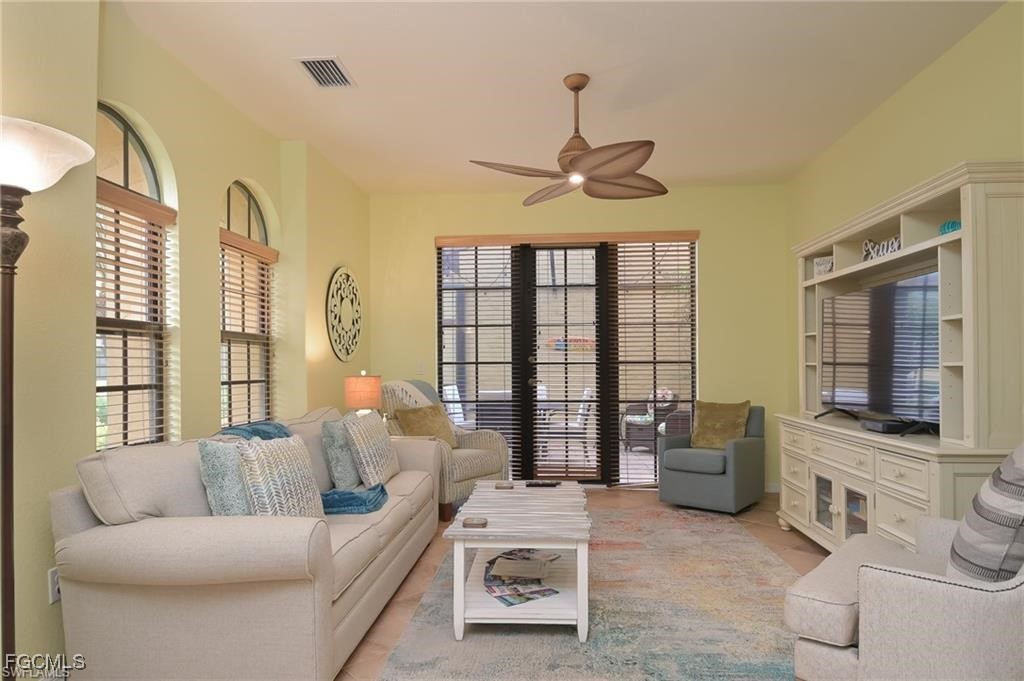 Very well-appointed Capistrano Casita available for seasonal rental. This casita offers 2 bedrooms with a loft, which is set up with a bed and a partition for privacy for extra guests. It also has a relaxing lanai area, 2 car garage and equipped with anything you would need. One of the perks of living in a Casita is no common shared walls. Paseo features resort-style activities including a town square with a gorgeous resort-style pool, lap pool, spa, fitness center, full-service salon, ice cream/coffee shop, business center/library, movie theater, tennis courts, pickle ball, restaurant, tiki bar, fishing pier & social/musical entertainment. Vibrant colors on buildings surrounded by tropical mature landscaping with unique Spanish architecture. Perfectly located near RSW airport, I75, shopping, restaurants and right between the Red Sox & Twins spring training facilities. Your paradise awaits!