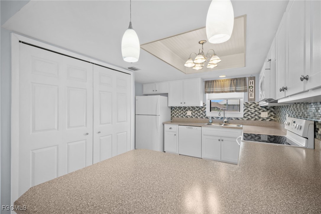Welcome to this stunning 2-bedroom, 2-bathroom home located in the vibrant North Fort Myers, FL. This gem boasts a sleek tile floor, high/vaulted ceilings, and a spacious living room that seamlessly flows into the dining room, creating an open and inviting space. The home is cable-ready and offers a balcony with breathtaking water views, perfect for enjoying the Florida sunsets.