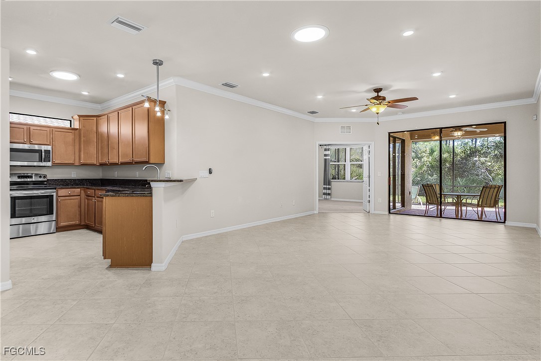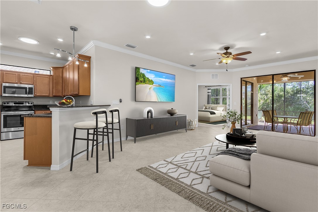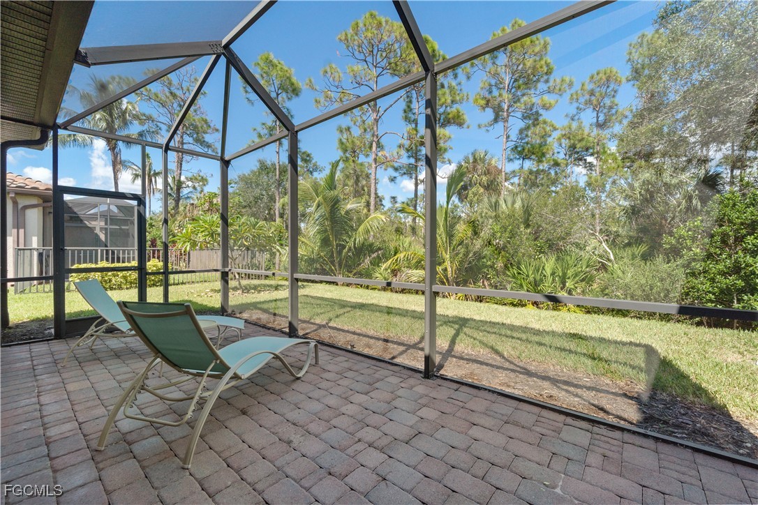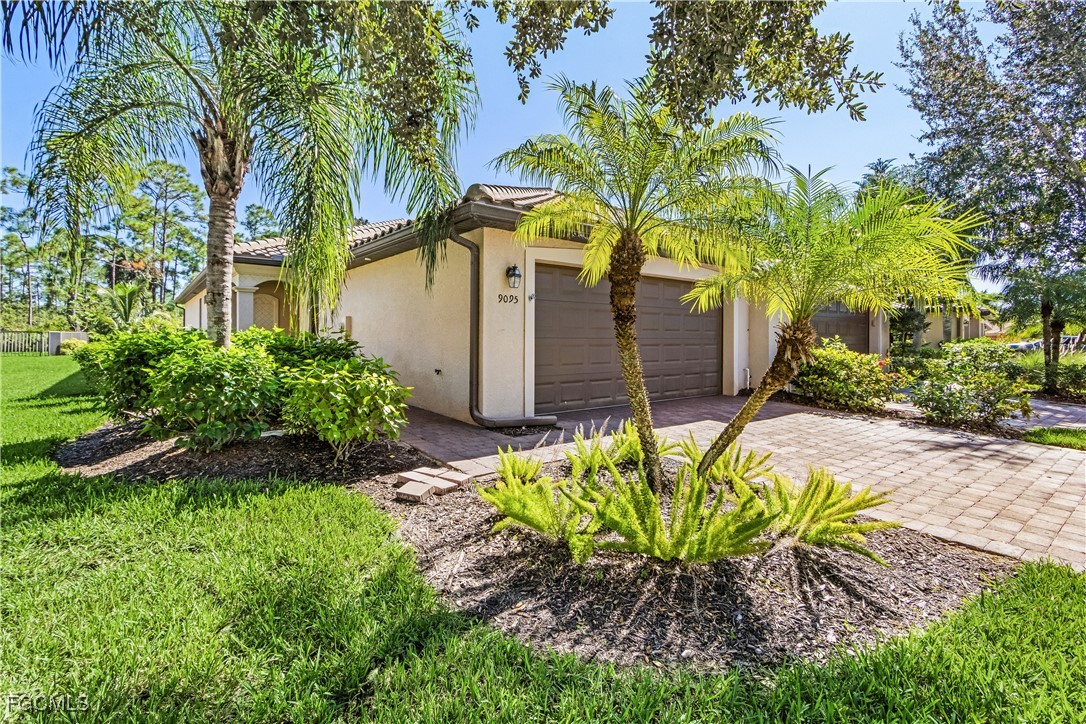 Welcome to 9095 Water Tupelo Rd, an upgraded villa in the desirable gated community of Reflection Isles in Fort Myers. From the beveled-glass front door and lush landscaping to the refined interior details, this home exudes pride of ownership and modern comfort. (Agents! See notes on elevation levels - big plus!) The home features diagonal tile throughout, solar tubes that fill the space with natural light, and soft neutral tones complemented by crown molding, upgraded lighting, and premium rocker switches. The kitchen offers granite countertops, stainless-steel appliances, and a breakfast bar ideal for entertaining, while both bathrooms showcase quartz counters, custom framed mirrors, Moen fixtures, comfort-height toilets, and a seamless glass shower in the primary suite with the garden tub removed for an updated look. Thoughtful extras include upper laundry cabinetry, an overhead garage storage rack, a full-house water-filtration system, a garage screen with walk-through door, a 2024 water heater, a newer A/C, and energy-efficient high-impact windows providing both safety and savings. Step out to the screened lanai with electric storm shade and enjoy private preserve views—the perfect place to unwind or entertain with peace of mind. Reflection Isles offers resort-style living with a community pool and spa, fitness center, clubhouse, tennis and pickleball courts, basketball, playground, and organized activities for an active social atmosphere. Ideally located near I-75, Gulf Coast Town Center, Bell Tower Shops, FGCU, and the Southwest Florida International Airport, you’ll also be just minutes from spring-training ballparks for the Red Sox and Twins, countless dining options, and white-sand Gulf beaches. Combining quality craftsmanship, low-maintenance living, and a prime location, this home delivers the Florida lifestyle at its best—move-in ready, beautifully maintained, and waiting for you to call it home.