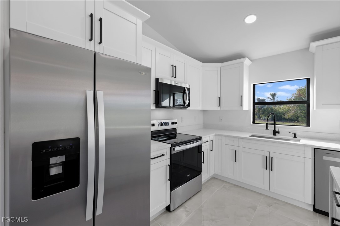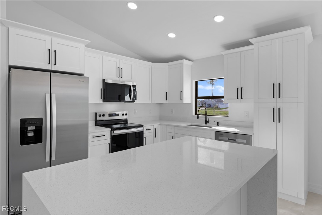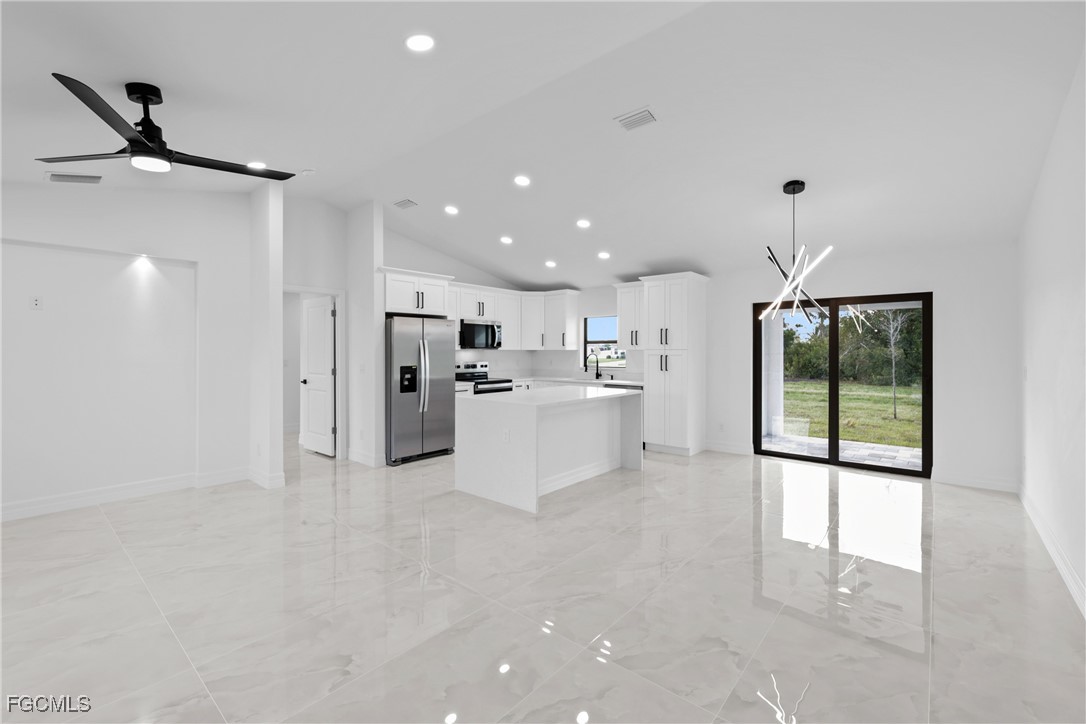 This brand-new home in Cape Coral features 3 bedrooms and 2 bathrooms. The spacious kitchen includes a beautiful waterfall island and plenty of storage. The master suite offers two walk-in closets and a bathroom with dual sinks and a large shower. Modern finishes throughout make this home move-in ready. Located in a great neighborhood with easy access to shopping, dining, and more, this home offers both comfort and convenience.