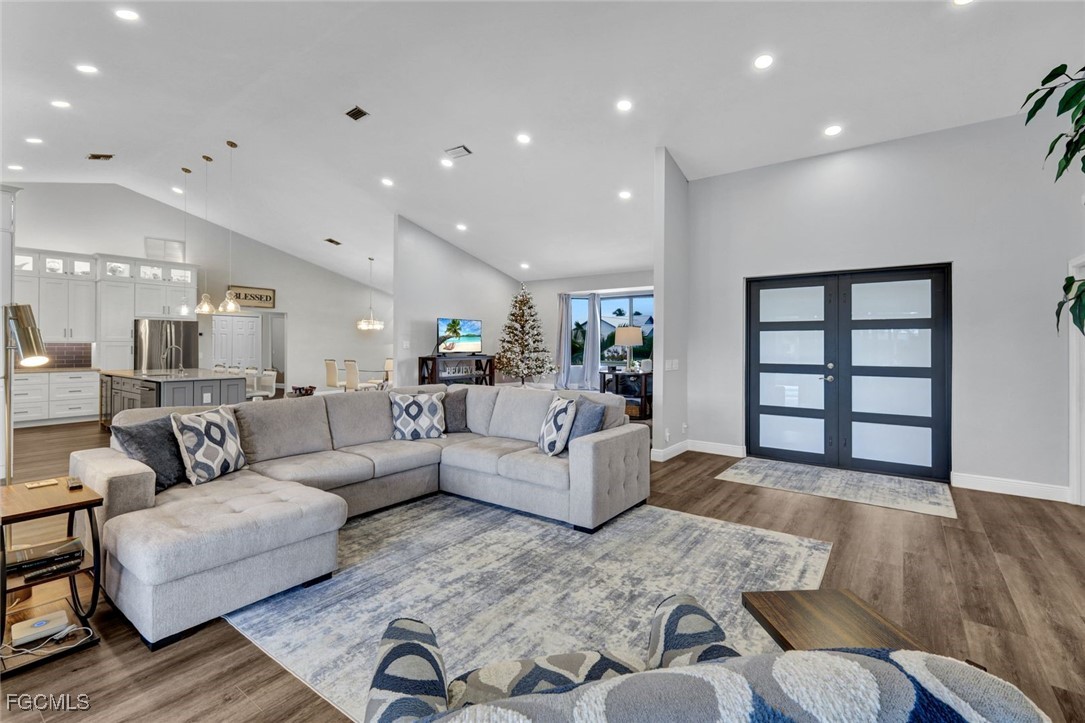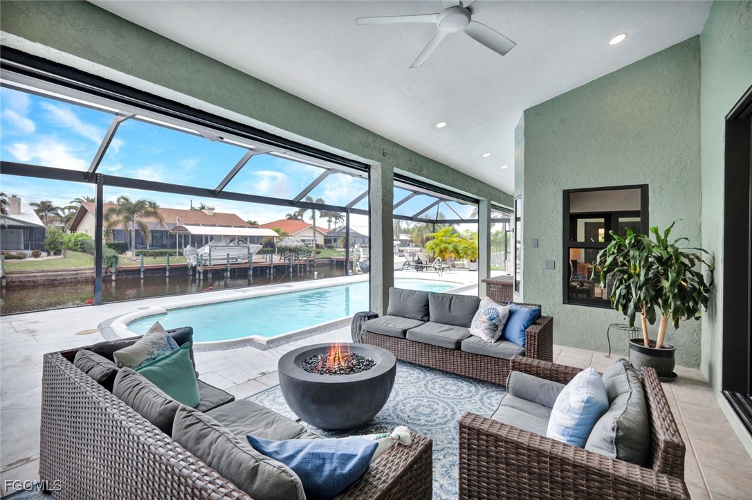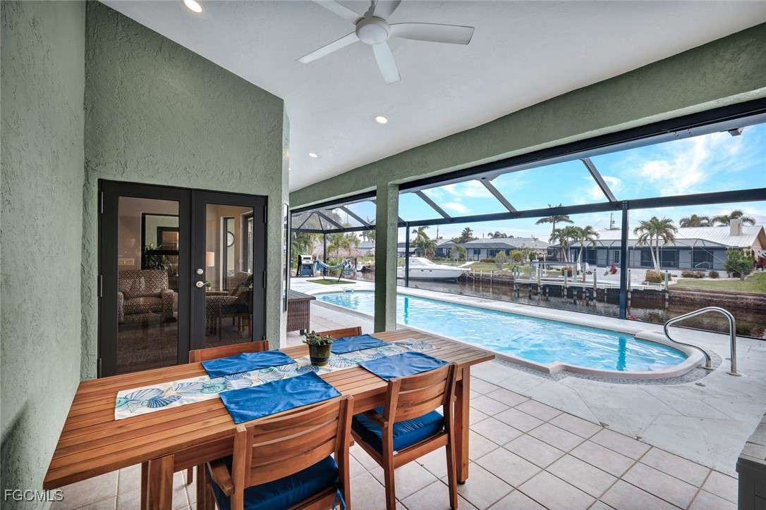 Boater’s Paradise! Welcome to this DIRECT GULF ACCESS pool home in the Tarpon Point area of SW Cape Coral. Completely reimagined and virtually BRAND NEW, this 3,100 SF home checks every box with 4 bedrooms, 3 full bathrooms, and large 3-car garage. Situated on an oversized triple .38-acre lot with 150 feet of waterfrontage, nearly 2x normal homes, this property accommodates multiple large boats while preserving unobstructed water views from the home and pool area! Enjoy SOUTHERN EXPOSURE for the most daytime sunlight on your pool & patio. Step inside to a modern, open-concept design with soaring cathedral ceilings, new wood-look flooring, and stunning panoramic water views. The designer kitchen is built for entertaining, featuring white Shaker cabinetry with illuminated upper cabinets, stainless steel appliances, a drawer microwave, and an oversized island with seating for 4 or more. A custom bar area with matching cabinetry creates a perfect flow for gatherings, entertaining, and family living. The Master Suite overlooks the water through a beautiful bay window and features tray ceilings, natural light, and generous closet space. The completely remodeled spa-inspired bathroom showcases marble, a custom walk-in shower, a designer tub, and dual vanities with illuminated mirrors. With 4 bedrooms, you have the flexibility to create a home office, a fitness room, or an in-law suite. Outdoor living with two waterfront areas - Enjoy a covered outdoor living room for lounging, and a separate dining area for entertaining. The oversized pool features a sun shelf, a deep swimming area, an outdoor shower, and a dedicated pool bathroom. A new panoramic picture window screen enclosure delivers breathtaking water views. The huge backyard is perfect for pets, children, and outdoor enjoyment. For boaters, this is unrestricted sailboat access, no bridges, no locks, and no delays. A new 10,000-pound remote-controlled lift is ready for your vessel, providing direct access to open water, Sanibel, Captiva, Pine Island Sound, and the Gulf. Built like a fortress! The home remained dry during hurricanes and features impact-resistant windows & doors, electric shutters on the patio, a metal roof, and extensive structural and mechanical upgrades. Renovations include removing walls to open the layout, new interior & exterior paint, new lighting, new fixtures, LVP flooring, two new AC systems, new hurricane windows & doors, a new water heater, a new pool heater & pump, updated plumbing & electrical, and a new remote boat lift motor. Experience the lifestyle of one of Cape Coral’s most desirable waterfront locations without HOA dues. Minutes from the new Bimini Square, The Cove, Slipaway, Tarpon Point Marina, and The Westin Cape Coral Resort, you are surrounded by some of the best waterfront dining & entertainment options in Southwest Florida. Nearby favorites include Gather, High Tide Social House, Pinchers, The Nauti Mermaid Bar & Grill, and Marker 92 Waterfront Restaurant.