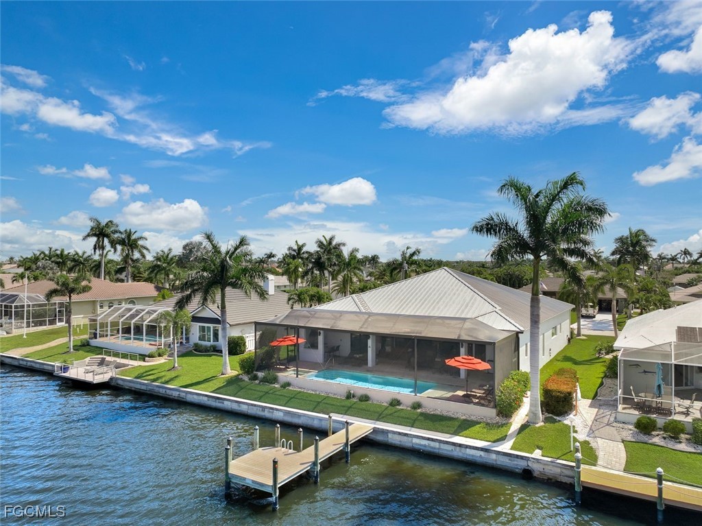 Welcome to this beautiful contemporary GULF-ACCESS home, perfectly positioned with sought-after western exposure to enjoy the spectacular sunsets Southwest Florida is famous for. Designed for comfortable everyday living and effortless entertaining, this home features an open, airy floor plan filled with natural light. A rare highlight is the two identical primary suites, each offering a private retreat with spa-inspired en-suite bathrooms, walk-through rainfall showers, double vanities, walk-in closets, and direct access to the pool area—ideal for guests or multi-generational living. The heart of the home flows seamlessly to the outdoor living space through expansive pocket sliding glass doors, creating the perfect indoor-outdoor lifestyle. Enjoy relaxing by the heated saltwater pool and spa (resurfaced in 2025), cooking in the fully equipped summer kitchen, or rinsing off after a day on the water with the outdoor shower. Boaters will appreciate the composite dock, while sunset lovers will fall in love with the oversized lanai and panoramic screens. Quality and peace of mind come standard with impact windows, a standing-seam metal roof, new pool cage and pool surface in 2025, surround sound, a three-car garage, and a paved driveway. This home is being offered TURNKEY, allowing you to move in and start enjoying the Florida lifestyle immediately. Be sure to explore the virtual tours and see for yourself what makes this home so special. I appreciate your interest in my listing!