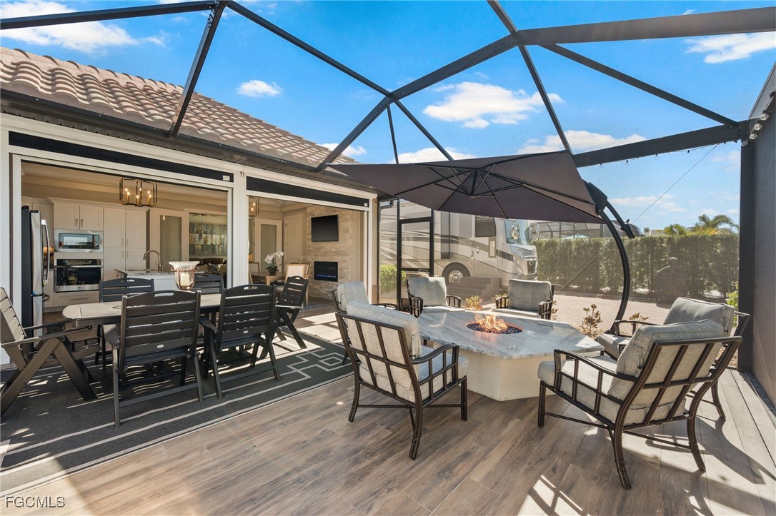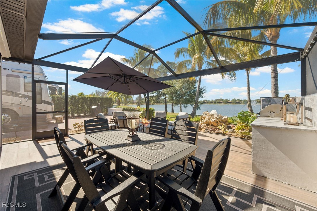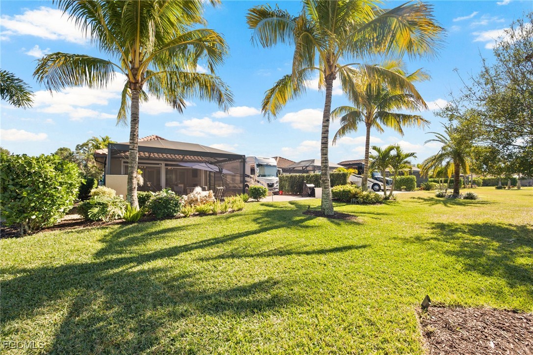 Experience the pinnacle of luxury motorcoach living in this stunning lakefront oasis. Situated on a meticulously landscaped lot, this property offers unparalleled sunsets and breathtaking water views. At the heart of this retreat is an impressive 840 sq. ft. coach cabana. The cabana’s "well-appointed" interior seamlessly blends sophisticated style with comfort, featuring high-end finishes and an open layout perfect for entertaining or relaxing after a day on the road. Outside, the "amazing landscaping" creates a lush, tropical sanctuary that frames the serene lake backdrop. This is more than just a lot; it’s a lifestyle destination for the discerning traveler. The extra long paver pad allows those with Stacker trailers painted to match their Motorcoach the ability to stay right on their own property. Being located within Golden Palms Luxury Motorcoach Resort allows you access to a stunning clubhouse, catering kitchen, outdoor grills, saltwater pool, hot tub, sauna, and exercise room. There are plenty of activities for everyone and every interest including pickleball, cornhole, kayaks, paddleboats, darts, board games, books, puzzles, 1 acre dog park, and outdoor wood burning firepit. The resort is located on 54 acres with a 22 acre lake for catch and release fishing. You will be surrounded by nature, yet only a short drive away from restaurants, shopping, parks, golf, airport, Baseball Spring Training Stadiums, and SWFL Beaches. This property is a fabulous place for your Class A or Super C Motorcoach for the "Winter Season" or as a "Home" base.
