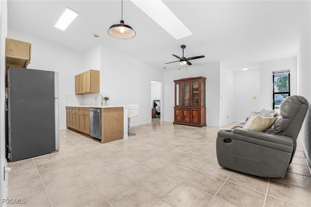 Amazing 2-bed,2-bath condo in the very desirable Courtyards close to Cape Harbour. This CORNER UNIT got completely remodeled, modern kitchen with STAINLESS STEEL appliances and QUARTZ counter tops, an island to sit, bright living room with a SKYLIGHT that brings in natural light. Master suite has sliding doors to the front patio including a huge walk-in closet and updated bathroom. Spacious guest suite with walk in closet and updated bath. Well-maintained community with great amenities like a big pool and a Clubhouse, very close to shopping, dining, the Marina and to fun enjoyment. HOA COVERS FLOOD INSURANCE!!! Front patio is under a beautiful Tree to enjoy your morning coffee