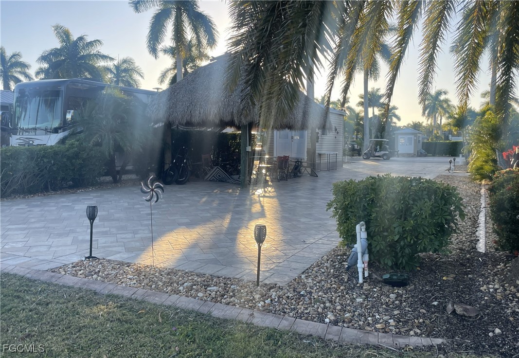 Welcome to Lot 388 at Cypress Trail RV Resort. A 5-star-rated resort located in beautiful southwest Florida in Fort Myers East off I-75. This 35 x 90' East Lake view lot is perfectly located while providing everything you need for peace of mind. The beautiful view of the fountain in the middle of the lake, makes this a breathless spot here in this resort, especially at night with all the beautiful lights around the lake. This class A only lot is ready for any 50 or 30 amp service RV, water/sewer, high-speed internet, and over 75 cable television channels. This electric ready Tiki comes with a 65-inch surround sound LG TV. This tiki was reattached just a year ago and ready for your relaxation with friends and family while enjoying a Traeger smoker. This lot contains a finished 8x15' Amazon Shed with everything you need inside, including on-demand hot water, a vanity with a sick, a medicine cabinet and a toilet, and a 2 years old GE stackable washer and dryer, only used 20 times. It also has a Galanz refrigerator. The club house is just around the corner, accessing all the wonderful amenities, like the pool, gym, laundry, library, pickleball, tennis, bocce, shuffleboard and a large ball room. This resort has so much more to offer like live music concerts, dance events, fun excursions, craft shows, and so much more. The club house is just around the corner, accessing all the wonderful amenities, like the pool, gym, laundry, library, pickleball, tennis, bocce, shuffleboard and a large ball room. This resort has so much more to offer like live music concerts, dance events, fun excursions, craft shows, and so much more. This resort gives you quick access to all of southwest Florida's gorgeous beaches, in addition to Fort Myers Beach and Sanibel Island.