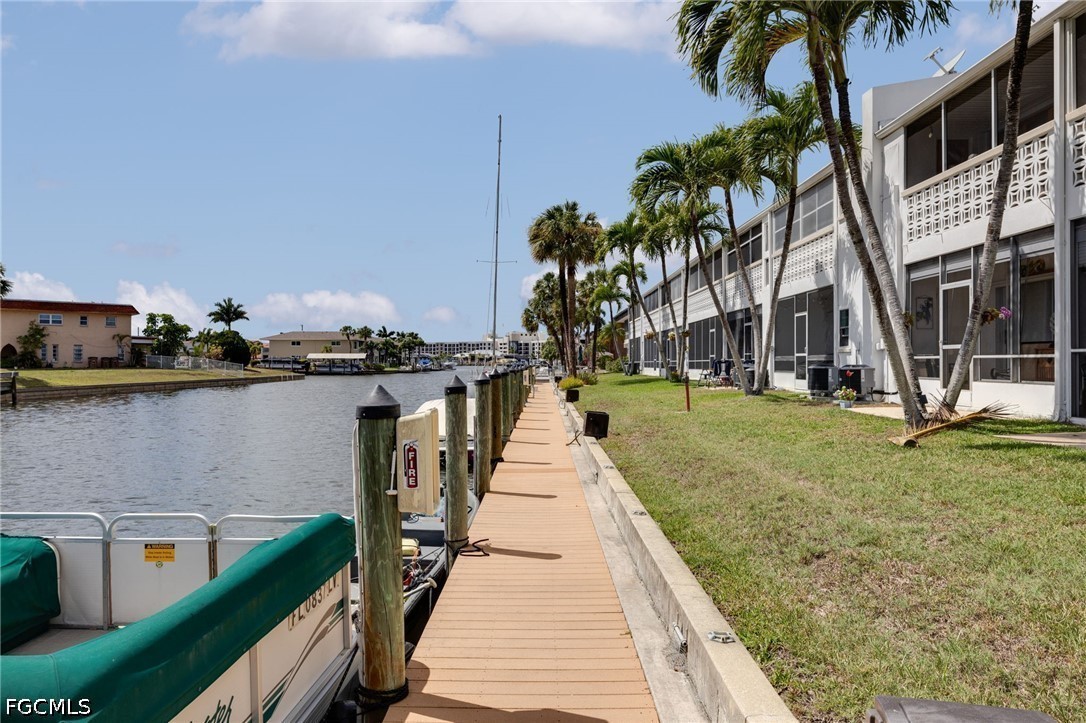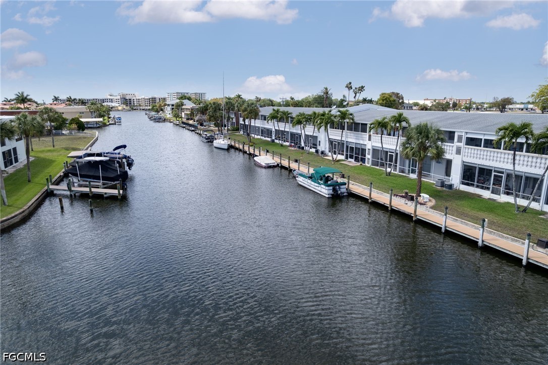 Charming waterfront living in the heart of Cape Coral’s growing downtown district. This first-floor unit offers direct sailboat access with no bridges to open water and access to a community dock—perfect for quick Gulf access.