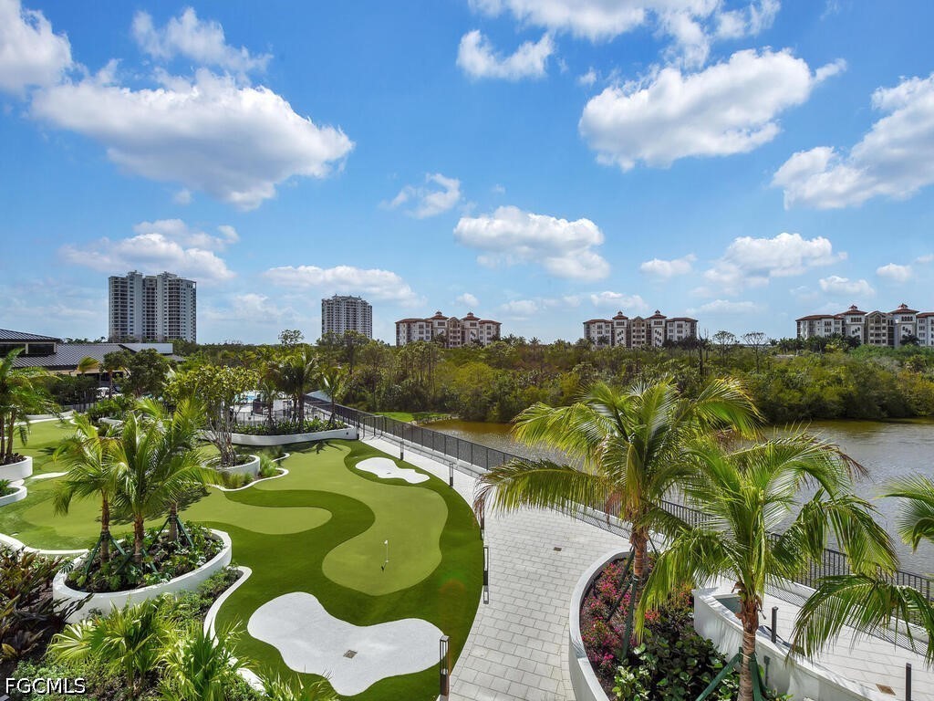 Infinity is designed around a true amenity-driven lifestyle. Residents enjoy multiple resort-style pools, including a beach-entry pool and lap lanes; poolside dining and bar service; a full fitness and wellness center with sauna, steam, massage, and hot-and-cold plunge pools; pickleball courts, bocce, a putting course; and thoughtfully designed social spaces throughout.