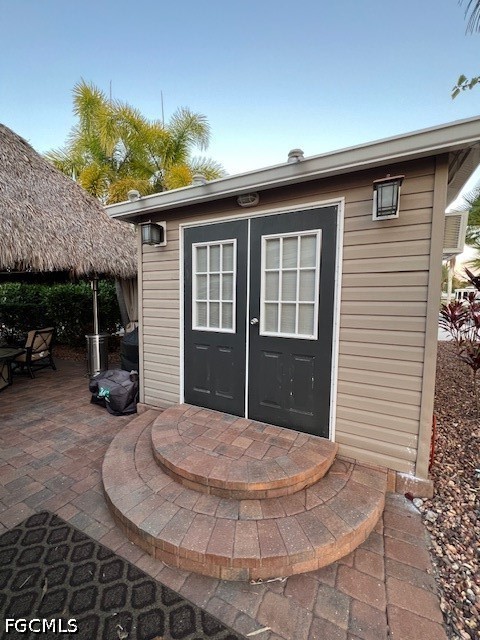 Oversize Lot #243. This lot is a beautiful piece of paradise at Cypress Trail RV Resort in Fort Myers, Florida. It is a highly desired north facing paver lot on Sunset Lake. Drive your Class A in and see a great view of the water, the lighted fountains and a view of the clubhouse in the distance. The lot is extra-large and beautifully landscaped with low-voltage lighting and an irrigation system. The Tiki Hut is an irregular size of 14’ x 20’ and was recently rethatched in December of 2023. The Tiki Hut has extra living space and is fully screened with custom designed panels which provide great privacy, comfort for cool evenings and a wonderful area for entertaining guests. Also on the lot is a 10’ x 12’ Amazon shed that is fully finished and contains a shower, toilet, sink, an on-demand water heater and air conditioning. There is an open space in the shed for you to custom design or use as storage for your furniture when you are not at the resort. It’s always great to have a spare bathroom in your shed for your guest. You will be mesmerized at the beautiful sunsets off Sunset Lake that you will thoroughly enjoy in the evenings. There are many activities offered within the resort, including pickle ball, swimming pool, crafts, entertainment, dancing, exercise classes, pool room, gym, many specialty card and game groups for you to join, very well run and funded HOA, rental program for when you are not on site, and endless friendship opportunities! HOA fees provide water, sewer, garbage, fiber internet, and all amenities. Up to 2 dogs per lot and we have a fenced dog park with shade. Electric metered at site. Taxes approximately $2000 per year. Take this opportunity to make this lot yours and enjoy all Florida and Fort Myers have to offer!