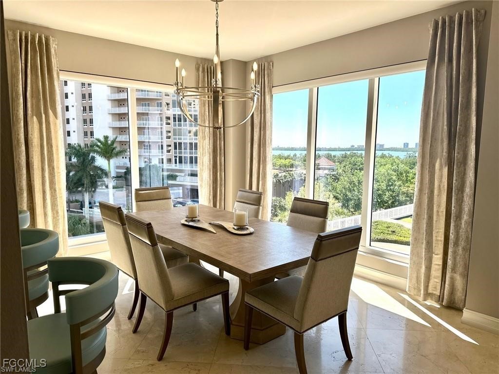 Seasonal/Long Term rental! Welcome to your castle in the sky overlooking the Estero Bay & Gulf of Mexico! Enjoy the spectacular views this home has to offer. TURN-KEY FURNISHED 3BRs & 3 full baths, THIS is the home you have been searching for! As you enter, you will be struck by the mesmerizing views from the dining/kitchen, living room & primary bedroom! Floor to ceiling windows in dining/primary PLUS sliding doors leading out to the lanai --there is always something new to see on the horizon! Enjoy meals in the dining room or on the enclosed screened lanai, just off the kitchen, while viewing the famous Gulf sunset! Your morning coffee or evening cocktail are the perfect accompaniments to the unmatched view! Spend the day at the Beach Club or just outside Esperia's doors at the magnificent pool! Take a leisurely bath in your en suite bathroom after a lovely cocktail hour on your lanai. Open the sliding doors to the lanai to enjoy the year-round sea breeze. With 2 guest bedrooms and 2 addl baths, you can very comfortably entertain friends & family. The perfect unit in the perfect community. Come and enjoy the magic of the Bonita Bay lifestyle!
