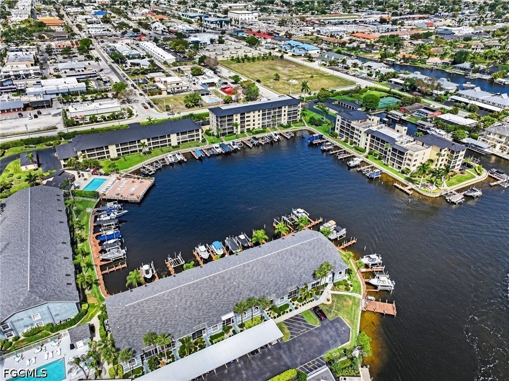Fantastic 2 bedroom 2 bath 1 car garage gulf access condo in Clipper Bay. This end unit boasts over 1300sf of living area, large kitchen with wood cabinets, spacious living area, generous sized bedrooms, wood and tile flooring, loads of outdoor living space on the screened lanai overlooking the marina and basin. Great location that is walking distance to restaurants and shopping and so much more!! Boat dock available!