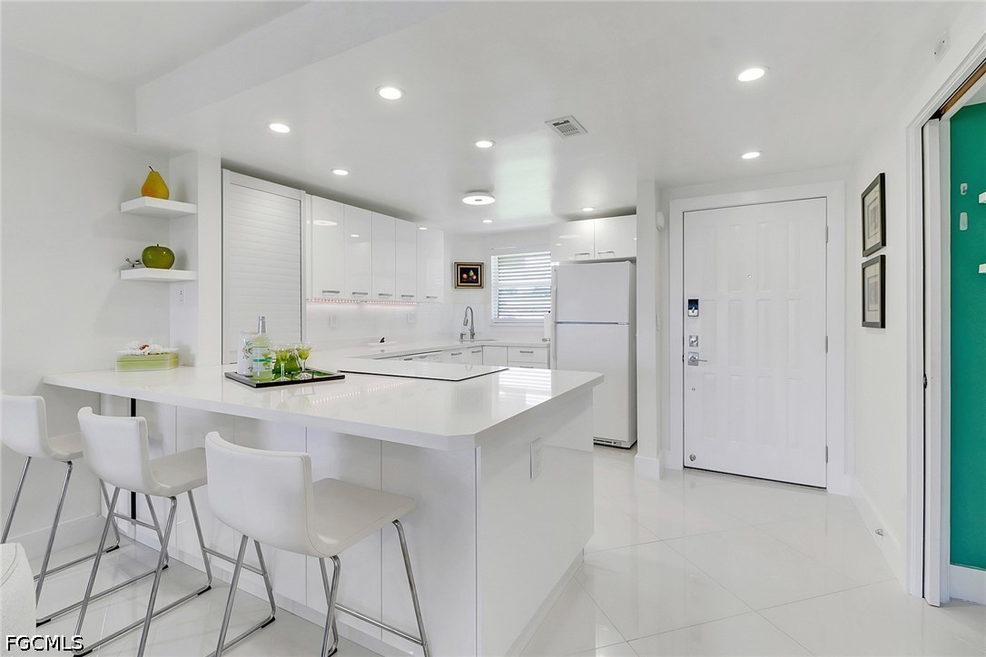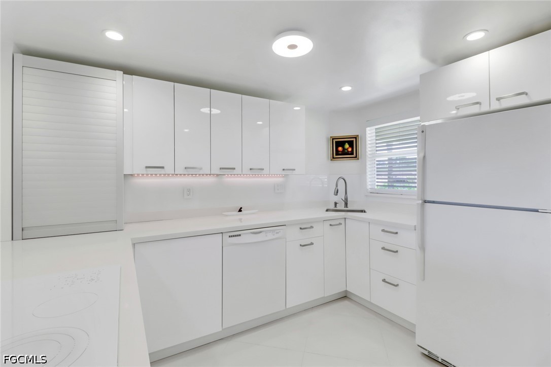 FREE GOLF MEMBERSHIP INCLUDED! One-of-a-kind, FULLY RENOVATED condo like no other in High Point Country Club. Ideal for Arthrex employee. Enjoy stunning views of the golf course and fountains through a full wall of windows from the serene glass-enclosed lanai—bathed in natural light. The spacious living room opens to the lanai, the perfect spot for morning coffee and watching the golfers go by. A sleek custom wall unit offers generous, stylish storage and features a 65” TV. Custom-designed blinds and curtains throughout—including on the lanai—add a tropical touch. Elegant white tile flooring is both modern and easy to maintain. The white, contemporary kitchen features special lighting and a new Samsung refrigerator (not shown in photos). White glass-front appliances seamlessly blend into the elegant aesthetic. The primary bedroom includes a custom expanded closet system and an enlarged bathroom with a full wall of beautiful and functional cabinetry. The second bedroom doubles as an office with a bed that expands to a king size—ideal for occasional guests. All bathrooms include modern full-wall mirrored cabinetry with hidden storage for optimal organization. The in-unit laundry room is well-appointed with shelving for all your storage needs. Live in luxury and enjoy High Point Country Club's FREE membership benefits, including golf, tennis, and pickleball on Naples' newest courts. The clubhouse features a pro shop, gym, library, seasonal restaurant, and a full calendar of activities year-round. Extras include covered parking, additional storage, and access to 6 pools. Utilities included: Cable and Wi-Fi (FPL electricity not included). IT CAN RENT FORM THE SEASSON FOR 4 MONTHS MINIMUM. Just 1 mile from the beach and minutes to 5th Avenue, Waterside Shops, Venetian Village, and Mercato. This is a 55 building—at least one occupant must be 55 . No smoking and no pets allowed.