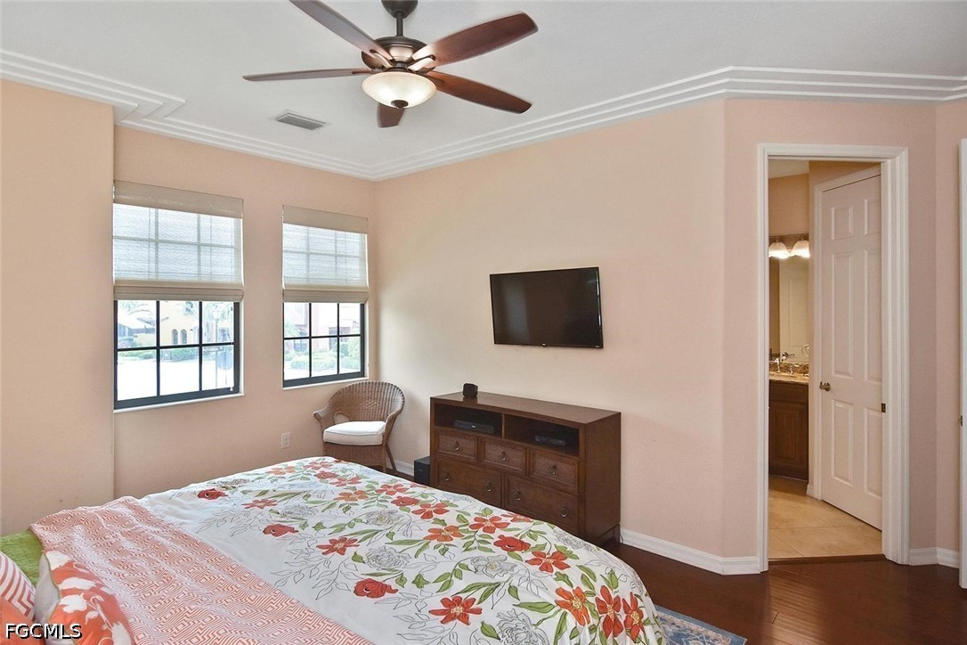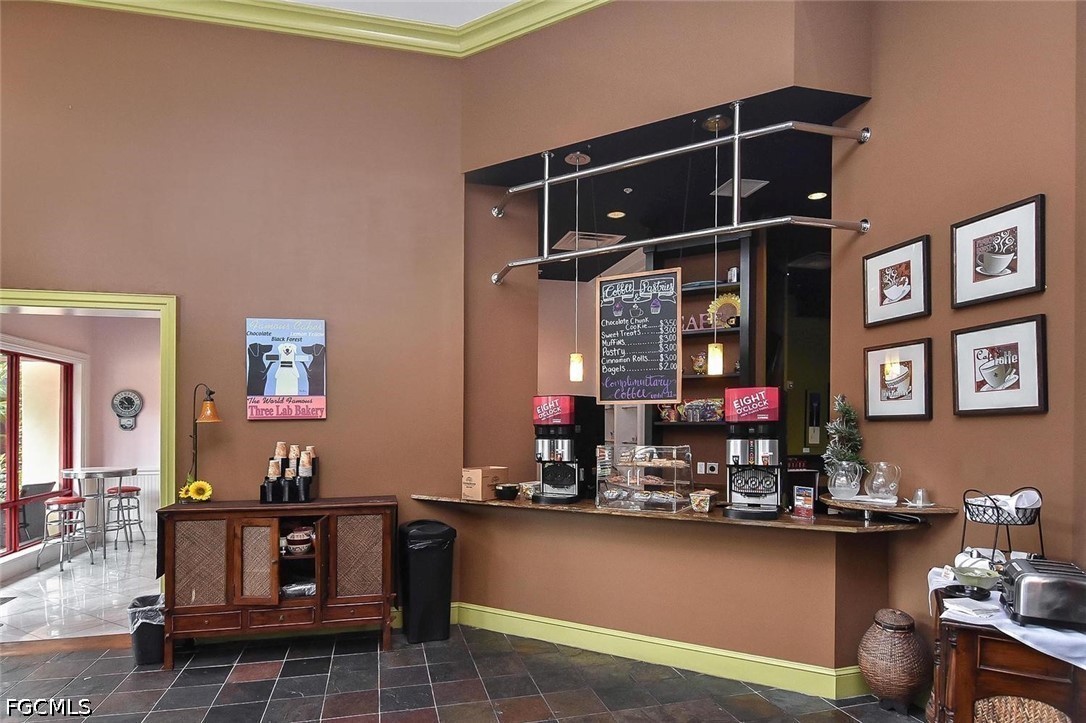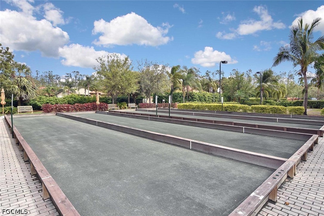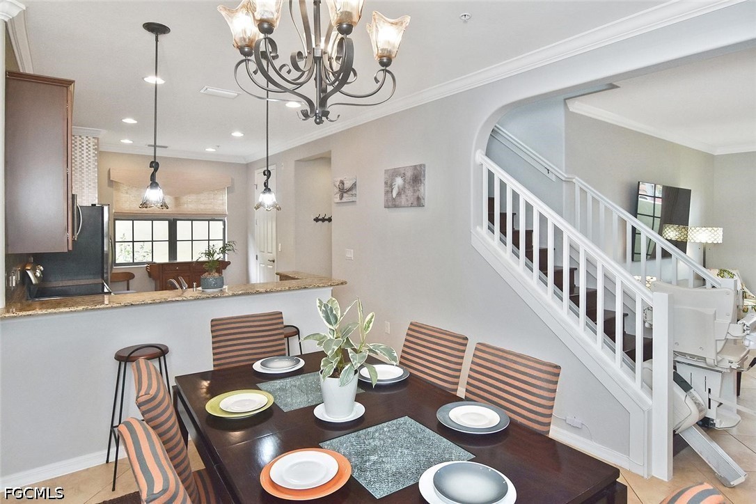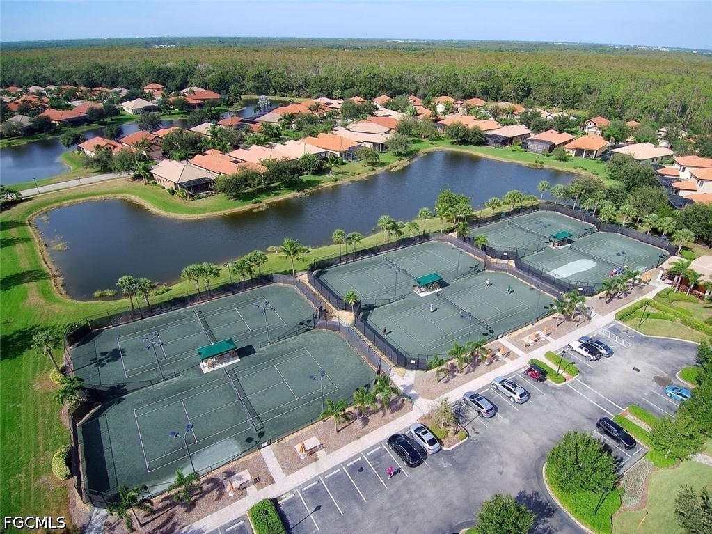 One of the best locations within PASEO! Directly across from Lifestyle Park's pickleball courts, sand volleyball court, BBQ grills with shaded chickee huts and picnic tables (even the mailbox station!), a slice of Paseo's famous luxury amenities are right at your doorstep. This lovely TURNKEY townhome, the Cordova Casita, is freshly repainted and professionally cleaned, and offers a peaceful and private setting with no noisy upstairs neighbors. Enter into a welcoming tiled living room enhanced by crown molding and a western-facing wall of windows with a door leading onto the private walled & brick-pavered patio, perfect for your flowering plants or potted garden! On the opposite side, you'll find the dining room adjacent to the spacious kitchen with a mobile stainless steel-topped island on wheels, which beautifully accents the GE stainless appliance package (with a brand-new dishwasher installed April 2026!) and the easy-to-clean checkered metal backsplash. Rich 42" pecan-colored cabinets with crown molding complement the granite countertops and provide ample room for all of your dishware, pots & pans, spices and more, in addition to a big walk-in pantry with customized shelving. A generous south-facing double window by the kitchen desk affords plenty of light as you work. A convenient half-bath with pedestal sink and brushed-nickel fixtures serves the ground floor. The lush dark wood of the staircase, with motorized chairlift, carries throughout the second floor's two ensuite bedrooms, both with custom closet-system shelving & drawers, and separated by a granite-topped hallway work station and the washer/dryer closet. Three stairway windows provide generous light onto the work station area! The home's two-car garage with coded keypad and epoxied flooring has a large storage closet with generous shelving, as well as an alcove area for even more storage. PASEO remains one of the most picturesque and highly-desired communities in all of Lee County. Picture YOURSELF living here!