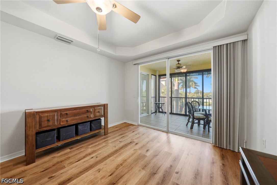 Welcome to the highly sought after gated community of Fountain Court in Punta Gorda Isles! This move in ready condo has 2 bedrooms and 2 bathrooms and is being offered partially furnished! The beautiful kitchen features new quartz countertops, stainless steel appliances, a breakfast bar, and plenty of cabinets for storage. The formal dining room and spacious living room with added plantation shutters are perfect for entertaining. The primary bedroom suite offers a large bedroom, private lanai access, a walk-in closet, and an ensuite bathroom with a new quartz vanity top, a walk-in shower and a separate tub. There is a spacious guest bedroom with plantation shutters and a guest bathroom with a walk in shower. The laundry room has a brand new washer/dryer! The lanai has added screens, roll down shades and offers lovely views of this well maintained community. Each building has two elevators. Under building parking is included with one dedicated spot, #302. Additional parking is available outside. There is also an ample size storage unit included in the parking area! The community features a heated swimming pool, heated spa, clubhouse, tennis/pickleball courts, shuffleboard, game room, library, outdoor grills, and fitness center! Enjoy easy access to Fishermen's Village, downtown Punta Gorda, community parks & boat ramps, golfing, shopping, dining, medical, and so much more. Make your appointment to see this one today!