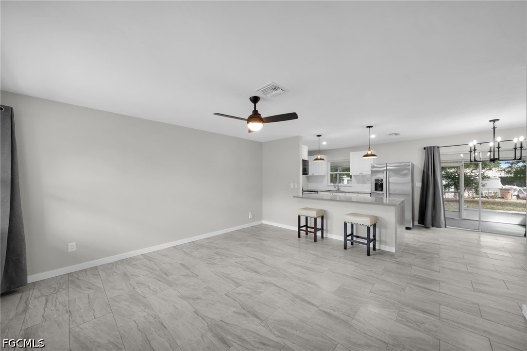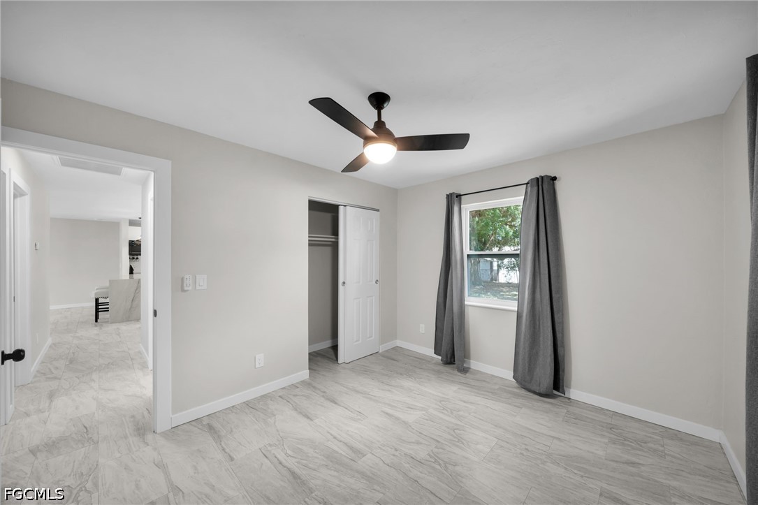 Move-in ready and beautifully renovated, this home is a rare find in the desirable Fort Myers Shores neighborhood. Located outside of the flood zone and not affected by Hurricane Ian, it offers both peace of mind and modern comfort. Recent upgrades include a new roof (2025), new A/C ducts (2026), impact windows, and a completely updated interior. The kitchen features elegant quartzite countertops with a striking waterfall edge, brand-new high-end soft-touch cabinetry, and never-used appliances. New tile flooring flows throughout the home, complemented by fresh interior and exterior paint, new doors, and updated window treatments.