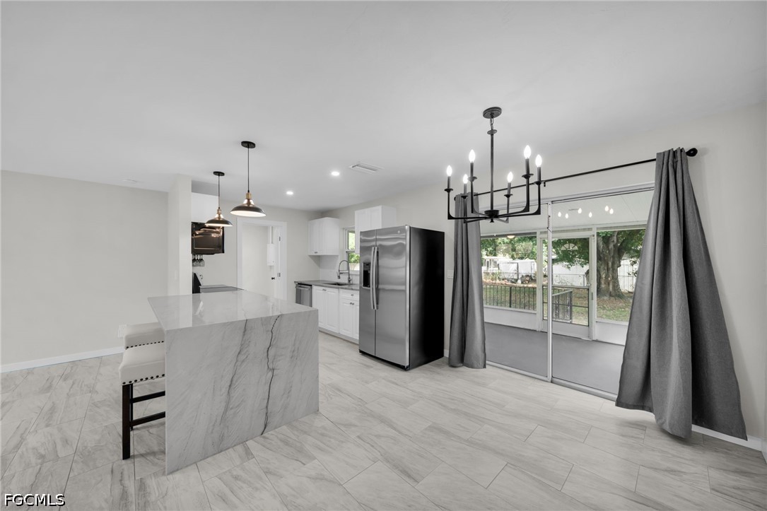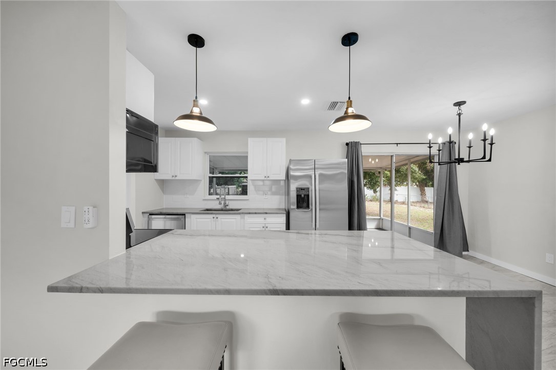 The bathroom has been fully remodeled with new tile and tub, and the entire home has been modernized with high-quality finishes and thoughtful design. Conveniently located along Palm Beach Blvd, you are within approximately one mile of Publix, Aldi, Walgreens, and a variety of dining options ranging from Italian cuisine to barbecue. Just 5 miles east of I-75 and approximately 21 minutes to Southwest Florida International Airport, this location offers both accessibility and neighborhood charm. This home truly has it all and is ready for immediate enjoyment.