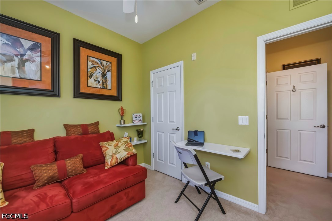 Located just 12 min from the BEACH and steps from the community pool this former model has been meticulously maintained and has never been a rental. NEWER appliances, BRAND NEW washer and dryer, NEW pendant lights in kitchen . The A/C is 3 years old. Tucked off the McGregor corridor there's a private resort style feel to this gated community yet just mintues from shopping and restaurants. The 1st floor open concept unit offers impact windows, alarm monitoring, a screened lanai and a covered carport. Majestic Palms offers the perfect blend of relaxation, security and convenience. Get your piece of paradise today!