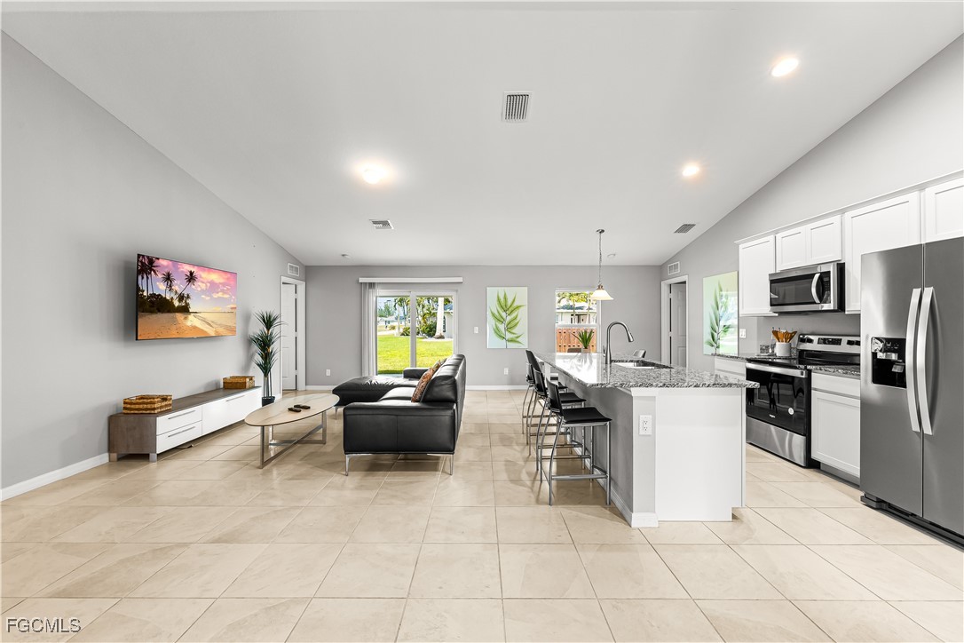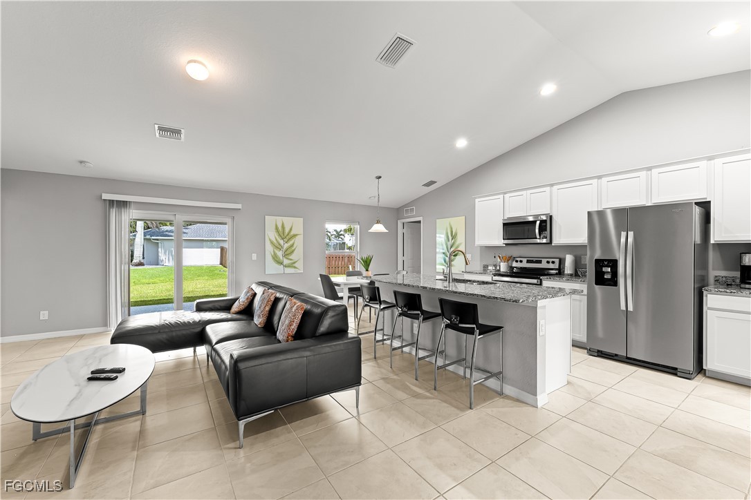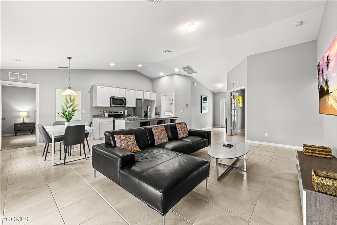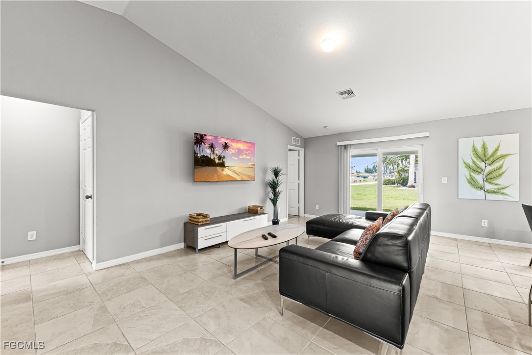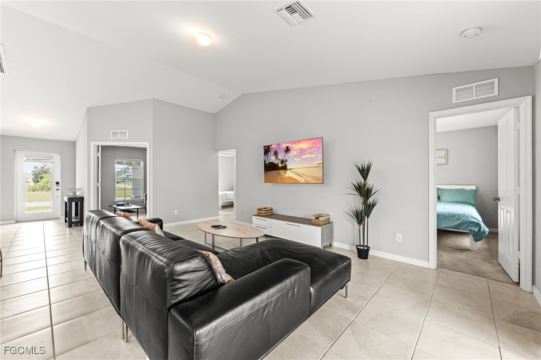 Discover this beautiful 3-bedroom, 2-bathroom + Den home located at 3101 NE 34 LN., Cape Coral. This well-maintained residence features an open floor plan, modern kitchen with stainless steel appliances, and a spacious living area perfect for family gatherings. The master suite offers a private retreat with a walk-in closet and en-suite bathroom. The property includes a versatile den, ideal for a home office or additional living space. Full size washer and Dryer. Situated on a desirable corner lot, the home boasts a paved driveway and a lanai that overlooks a lush backyard—perfect for relaxing and outdoor entertaining. With plenty of backyard space to build a pool/spa outdoor kitchen and more. Conveniently located near shopping, dining, and outdoor recreation, this home offers comfort and convenience in a sought-after Cape Coral neighborhood. Don't miss the opportunity to make this the perfect place to call HOME!