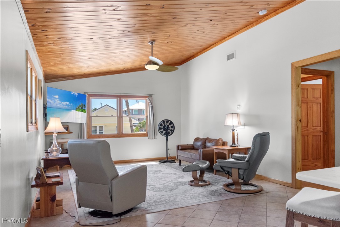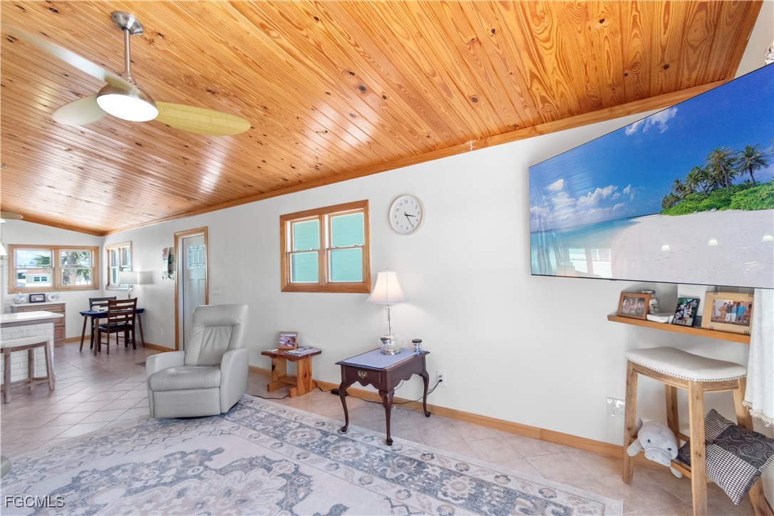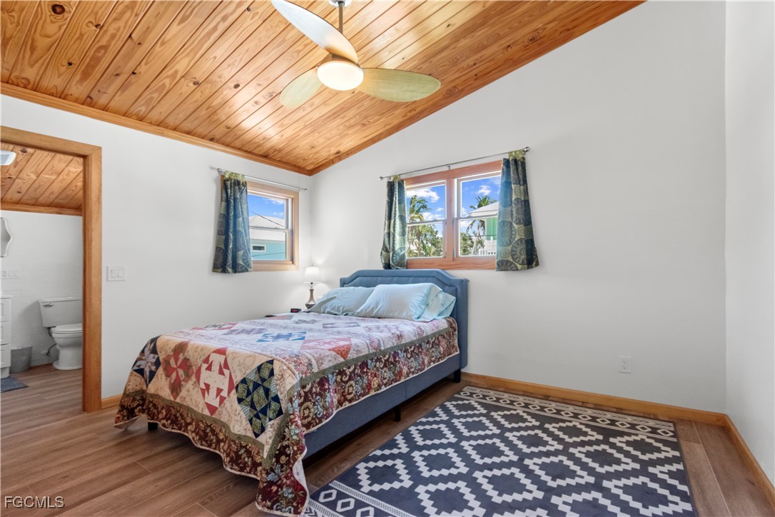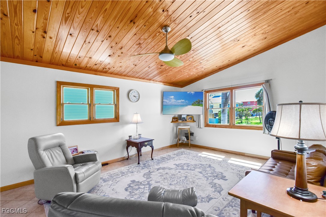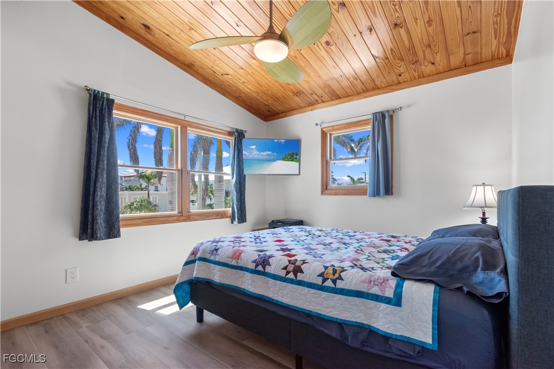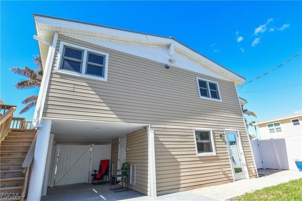 Just a short walk to the Gulf, Margaritaville, and Times Square, this charming elevated beach cottage is perfectly located in the sought-after weekly rental zone. Ideal as a full-time home, vacation getaway, or income-producing rental. Vaulted tongue-and-groove ceilings and abundant natural light highlight the open interior. The remodeled kitchen features Maple cabinetry, quartz countertops, subway tile backsplash, under-cabinet lighting, and new appliances. Additional updates include newer A/C units, new water heater, tile and plank flooring, solid-core pine doors, custom trim, Andersen impact windows, and a durable metal roof. The guest suite has its own bath, while the primary offers a spacious walk-in shower with tongue-and-groove detail. Downstairs, a bonus room with full bath and mini-split AC adds extra living space, ideal for a home office, studio, or rental option. Enjoy a fenced backyard, Island Bay Marina at the end of the street with rental slips, and off-island access just ¾ mile away.