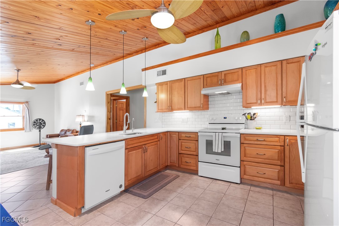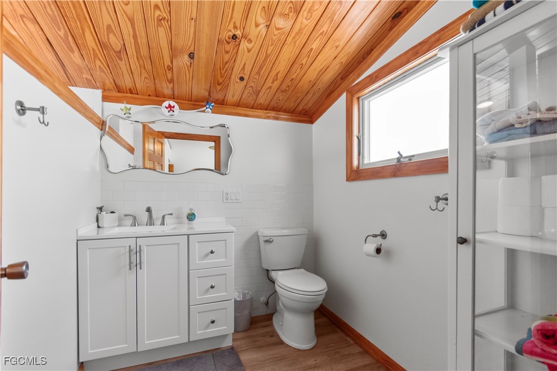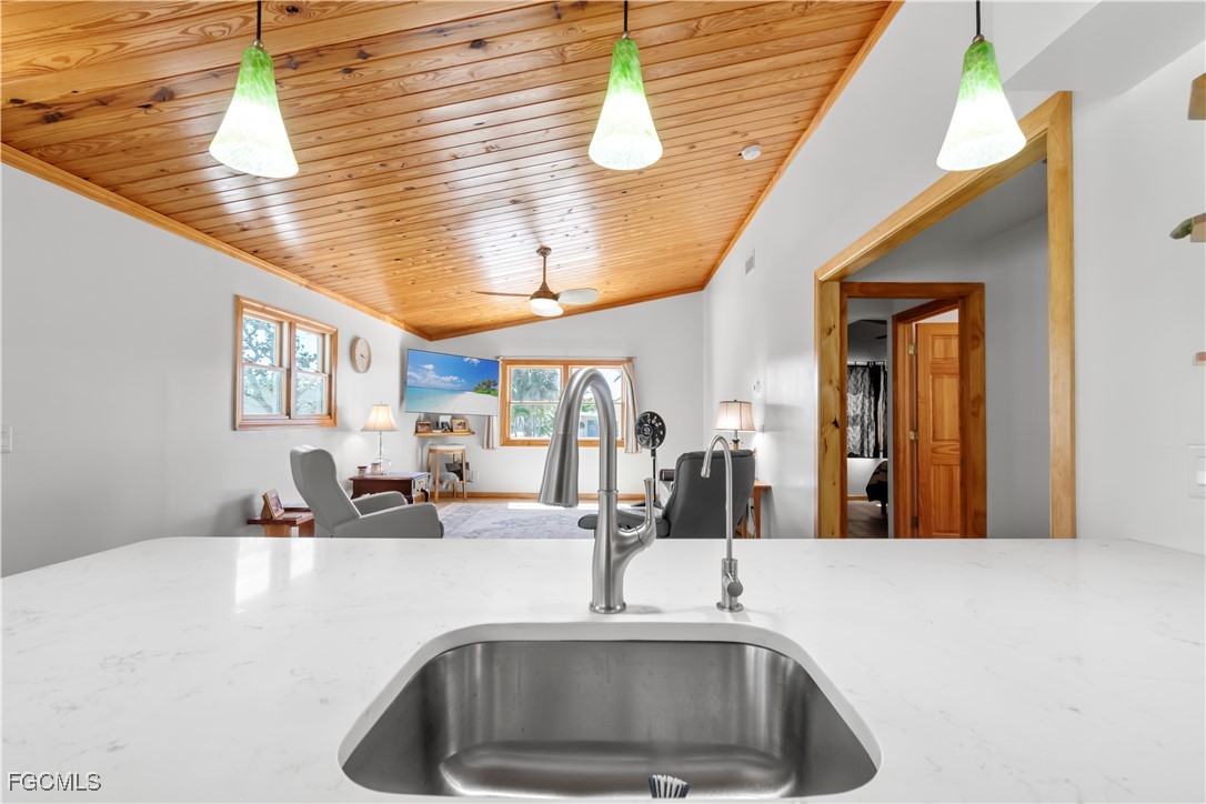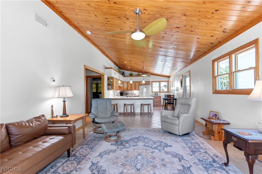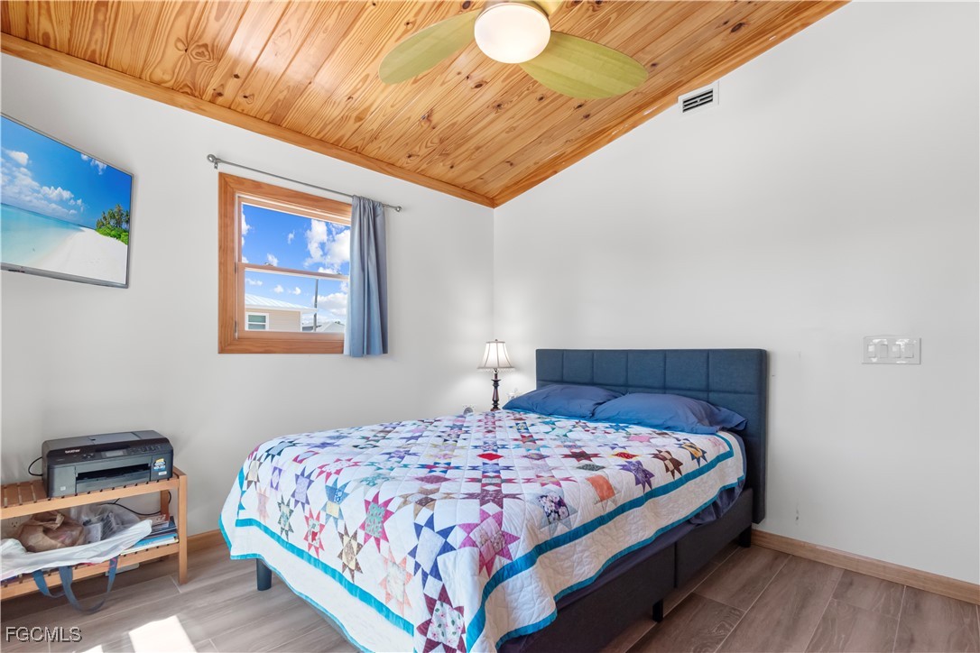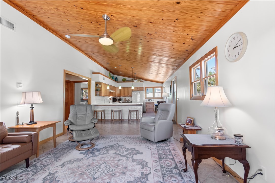 Just a short walk to the Gulf, Margaritaville, and Times Square, this charming elevated beach cottage is perfectly located in the sought-after weekly rental zone. Ideal as a full-time home, vacation getaway, or income-producing rental. Vaulted tongue-and-groove ceilings and abundant natural light highlight the open interior. The remodeled kitchen features Maple cabinetry, quartz countertops, subway tile backsplash, under-cabinet lighting, and new appliances. Additional updates include newer A/C units, new water heater, tile and plank flooring, solid-core pine doors, custom trim, Andersen impact windows, and a durable metal roof. The guest suite has its own bath, while the primary offers a spacious walk-in shower with tongue-and-groove detail. Downstairs, a bonus room with full bath and mini-split AC adds extra living space, ideal for a home office, studio, or rental option. Enjoy a fenced backyard, Island Bay Marina at the end of the street with rental slips, and off-island access just ¾ mile away.