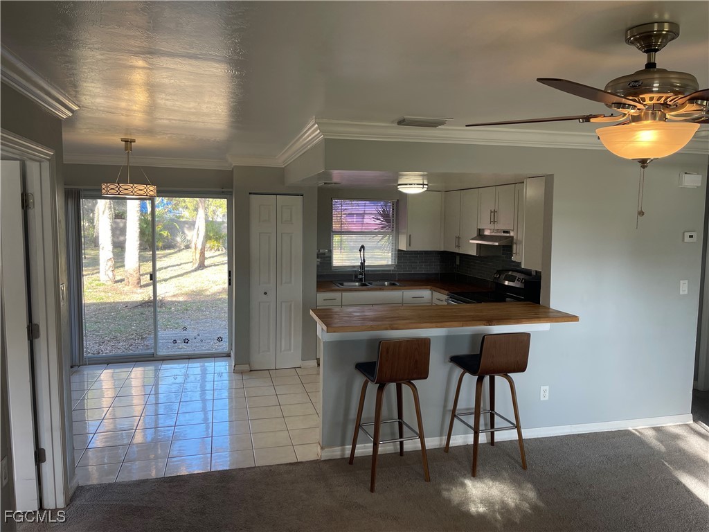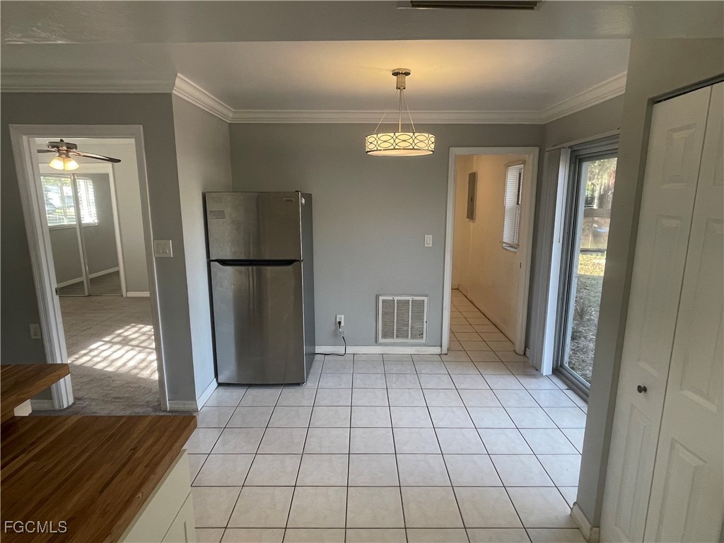 New roof September 2025! This comfortable, concrete block, 3 bedroom/2 bath home has a little something for everyone whether it's the first-time homebuyer or a retiree that's ready to downsize. The home, which has all new plumbing and water heater, also boasts a split floor plan, ceiling fans and window blinds throughout as well as crown molding in the living and dining areas - an especially nice touch not often found in today's homes. The charming kitchen makes great use of butcher block countertops, another unique feature, which even extends to the cozy breakfast bar. The kitchen also has a handy pantry as well as a tiled dining area which adjoins the living room. BONUS: The common areas are all sporting new paint. The master bedroom has a good-sized closet fronted with full sized mirrors and a spacious ensuite, while the guest bathroom has a tub/shower combo. The home has a one car garage as well as a dedicated laundry room with washer/dryer hookups that also provides additional storage space. Best of all, the large back yard is fully fenced and partially shaded by mature trees (as is the front of the home), ensuring the perfect spot to enjoy a pleasant evening breeze. There is even room for a pool or poured patio that could be easily accessed through the dining room's sliding glass door making this an ideal home choice in Port LaBelle, close to schools, shopping and restaurants. Call today to schedule your private showing.