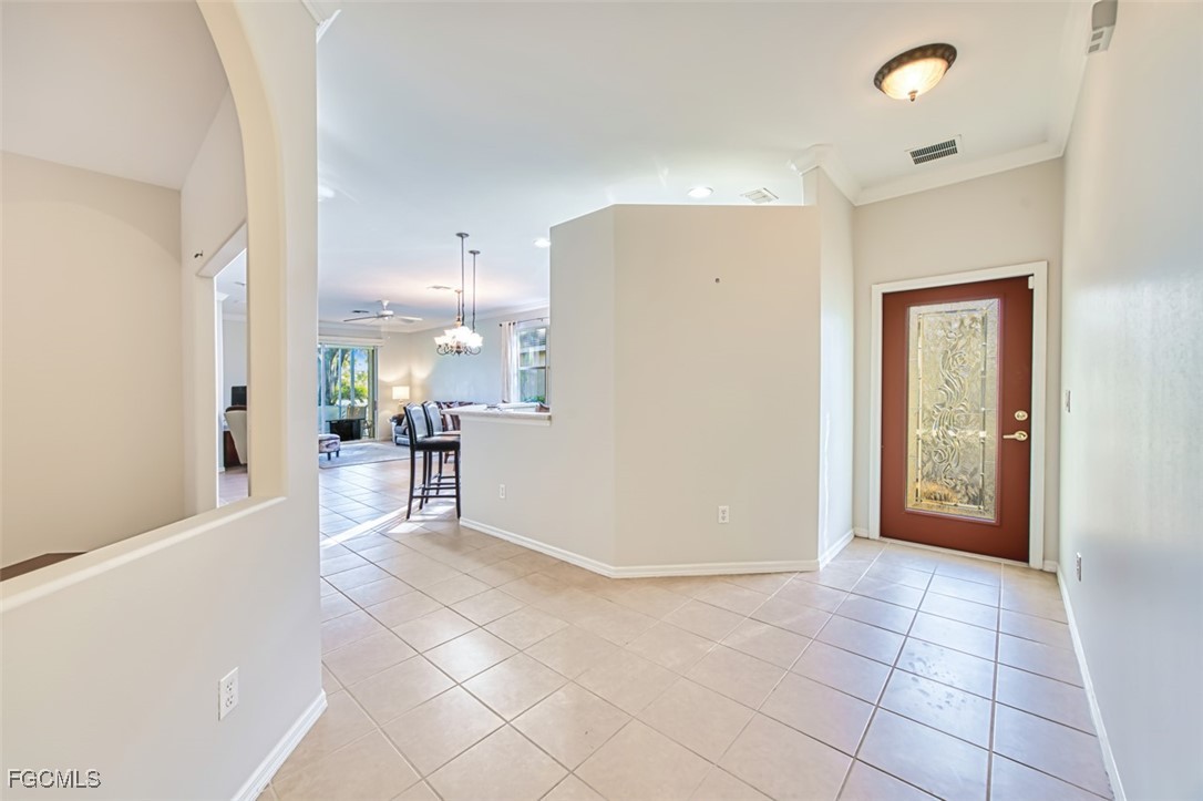 Welcome to paradise in the heart of Westminster! This light & bright villa provides 2 beds plus DEN, 2 bathrooms, and a 2-CAR GARAGE with lots of STORAGE and WORKSPACE. Plus, with a NEW ROOF (2023), you can enjoy peace of mind for years to come. Enjoy the outdoors and GOLF VIEWS on the EXTENDED SCREENED LANAI, complete with a PRIVATE SPA and FIRE TABLE - the perfect spot for entertaining guests or simply unwinding after a long day. The kitchen features durable and modern Corian counters, GLASS BACKSPLASH, white cabinets, STAINLESS STEEL appliances, & a spacious pantry. You'll love the NEUTRAL TILE flooring throughout the main area and bathrooms, complemented by cozy carpet in the bedrooms. CROWN MOLDING adds a touch of elegance to the space. Convenience is at your fingertips with a beautiful LAUNDRY ROOM that offers ample storage and a SINK. The furnishings are negotiable, allowing you more flexibility.