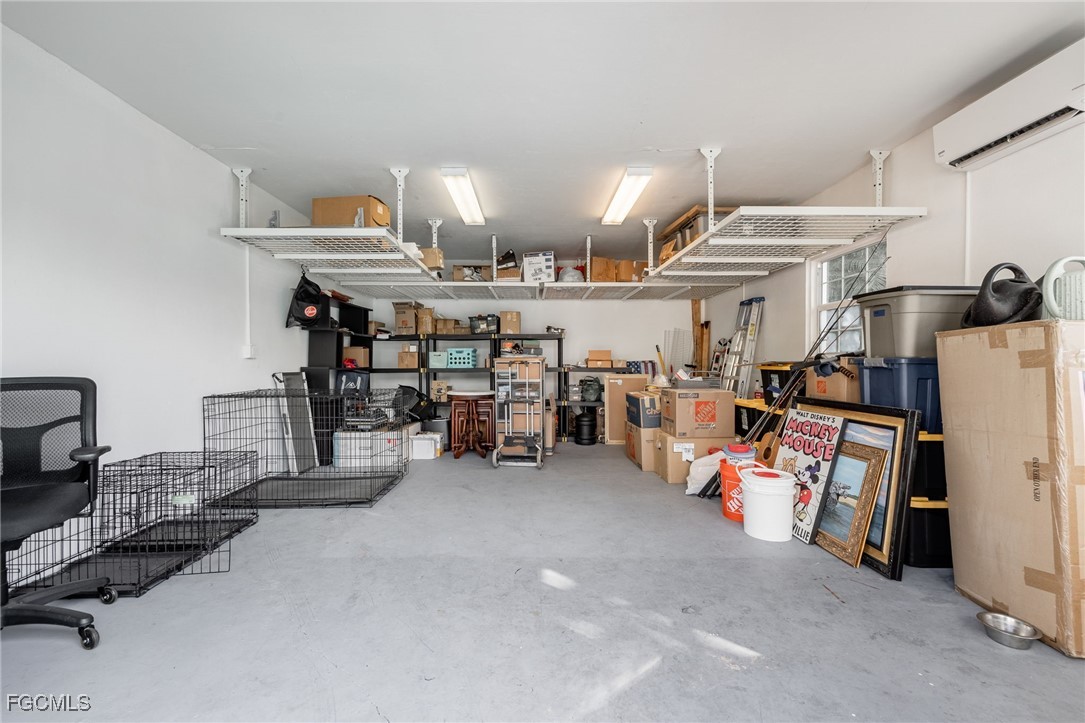 A large paver driveway introduces the home, providing ample parking and complementing the attached one-car garage at the front. Behind the residence, a separate outdoor garage is air-conditioned, ideal for use as a workshop, studio, or flexible storage space. A smaller shed provides additional room for tools or recreational gear. The layout of the property encourages versatility, with multiple outbuildings that expand the function of everyday living.