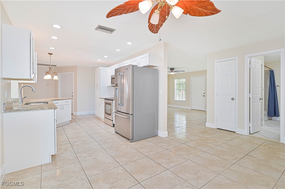 The kitchen is a standout with sleek stainless steel appliances, granite countertops, and plenty of cabinet space. The private primary suite provides a relaxing retreat, while two additional bedrooms and a second bath offer room for family or guests.