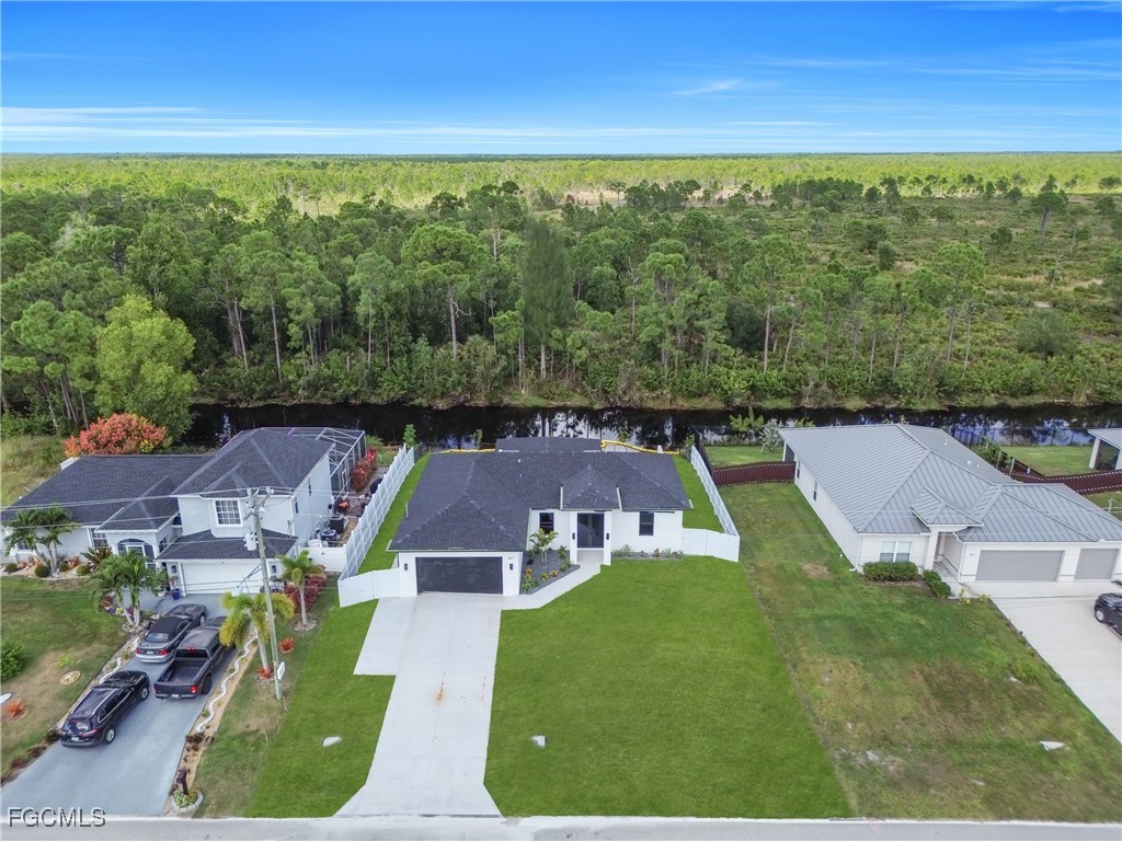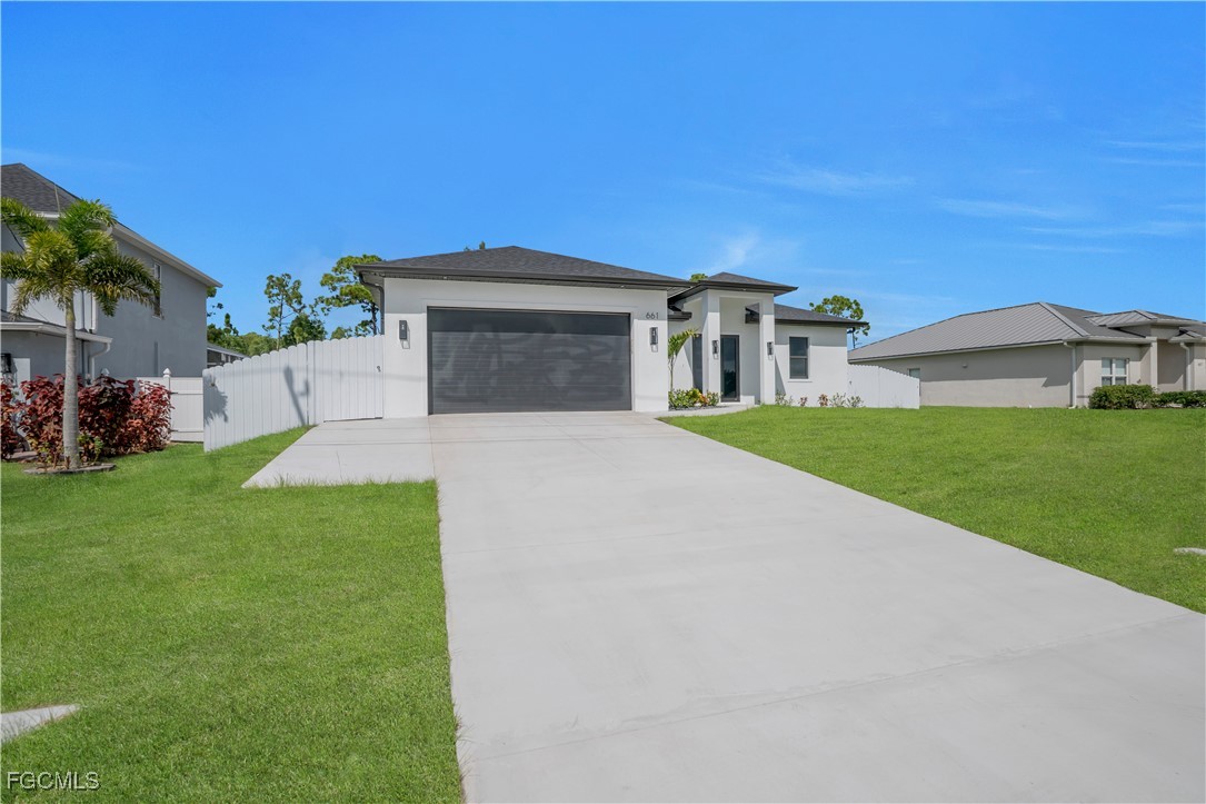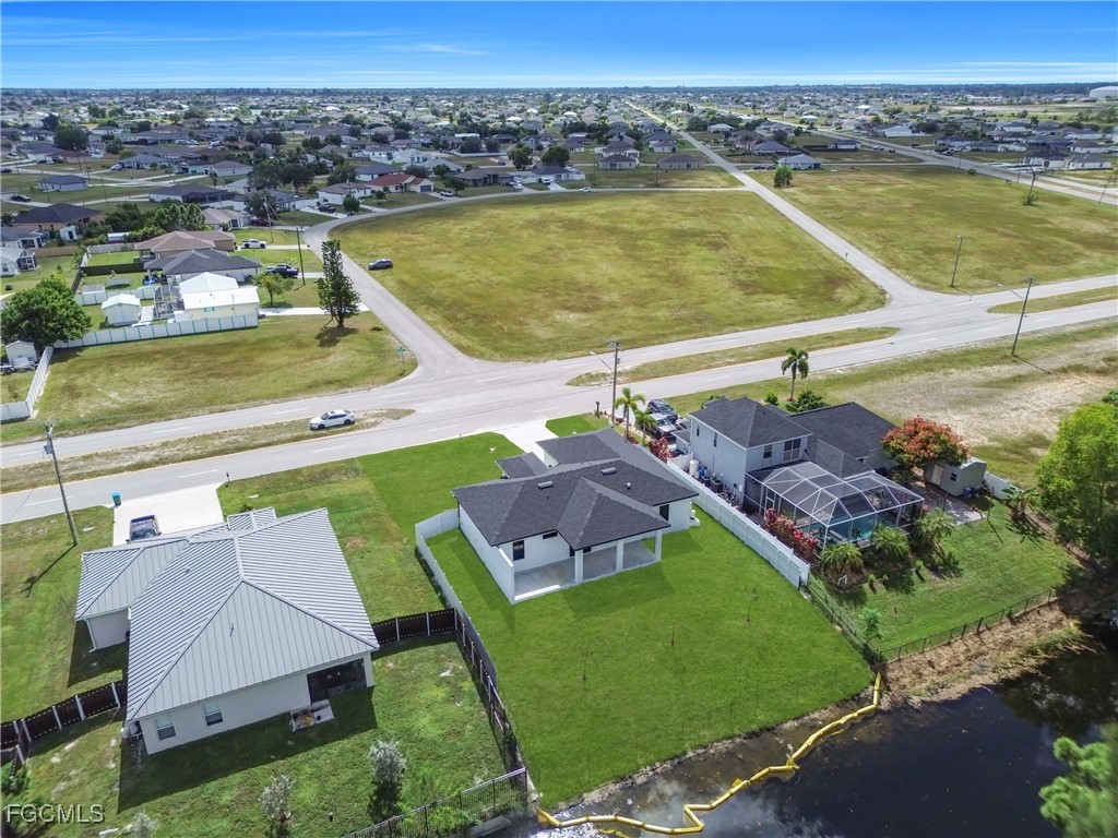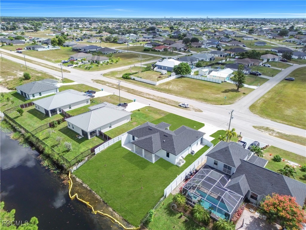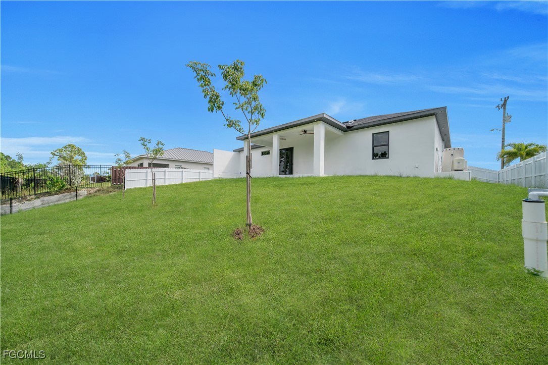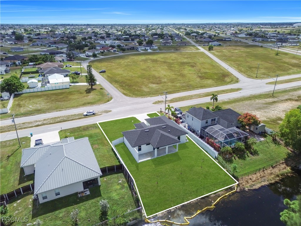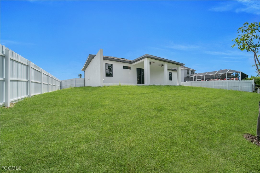 SELLER WILL CONTRIBUTE TOWARDS BUYERS CLOSING COSTS! Do not miss the opportunity to live in this beautiful Newly Built single-family home located in the much desired & family-oriented Cape Coral neighborhood! This light & airy 3 bedroom , 2 bathrooms, 2-Car Garage, high ceilings, open floor plan, Impact Windows (best quality in Florida), 8'ft interior doors, kitchen with modern appliances, center island with waterfall edge & custom range hood, porcelain floors thru-out, covered patio with fully fenced with a privacy fence with enough room to build your own resort-styled custom pool. This is a Must-See Beautiful Home! Ready to Move-In!!