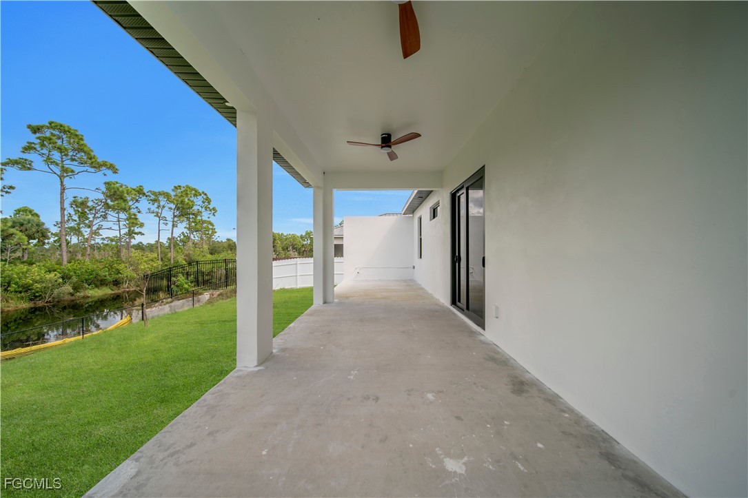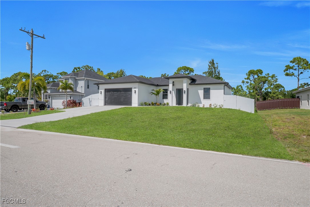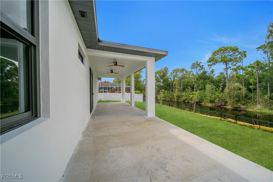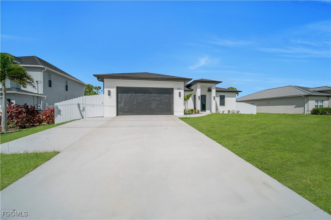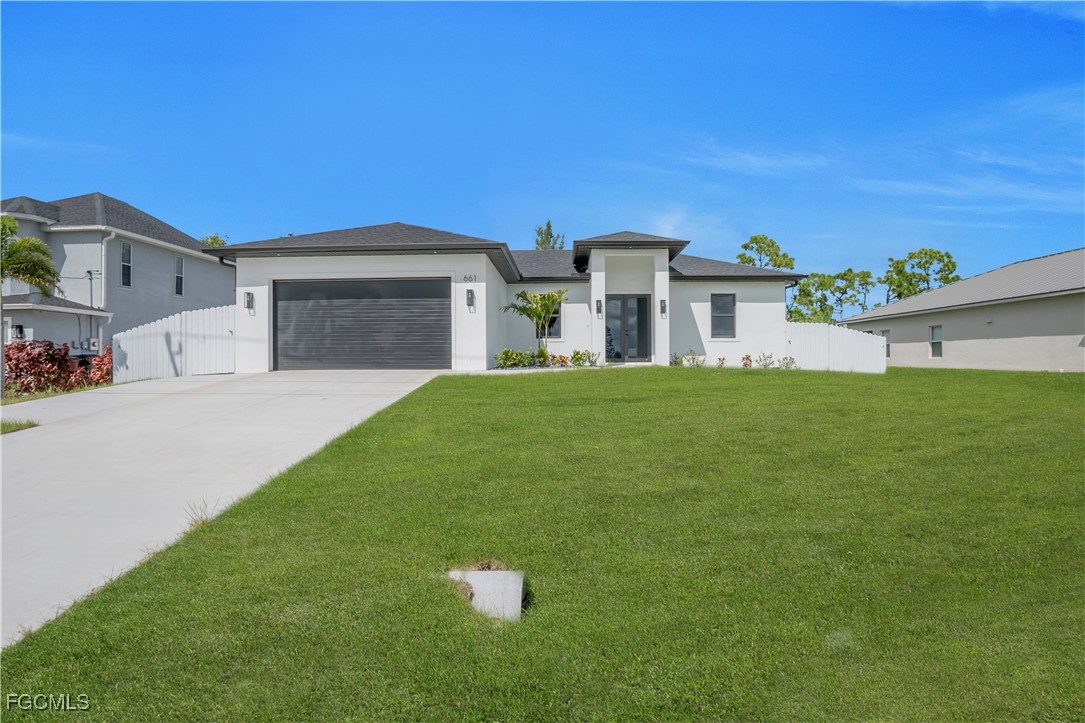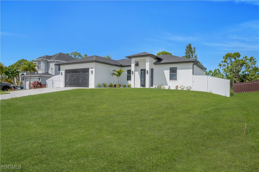 SELLER WILL CONTRIBUTE TOWARDS BUYERS CLOSING COSTS! Do not miss the opportunity to live in this beautiful Newly Built single-family home located in the much desired & family-oriented Cape Coral neighborhood! This light & airy 3 bedroom , 2 bathrooms, 2-Car Garage, high ceilings, open floor plan, Impact Windows (best quality in Florida), 8'ft interior doors, kitchen with modern appliances, center island with waterfall edge & custom range hood, porcelain floors thru-out, covered patio with fully fenced with a privacy fence with enough room to build your own resort-styled custom pool. This is a Must-See Beautiful Home! Ready to Move-In!!