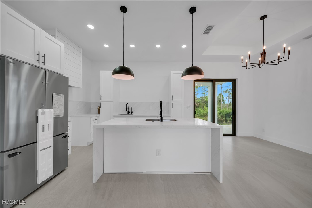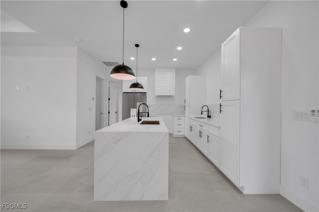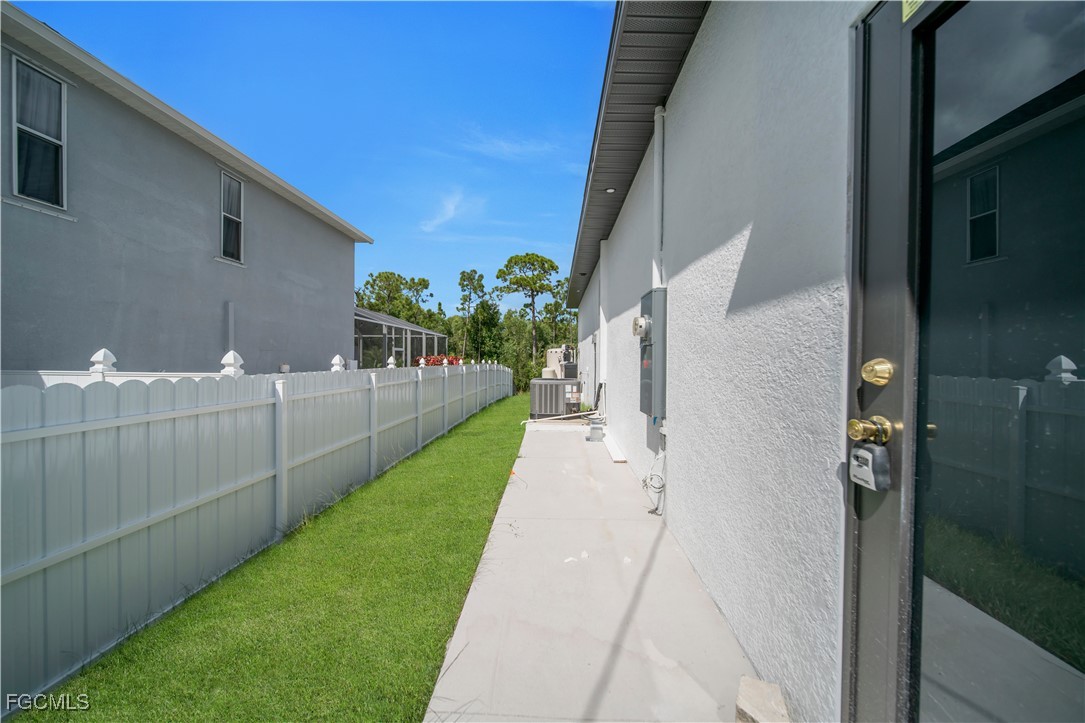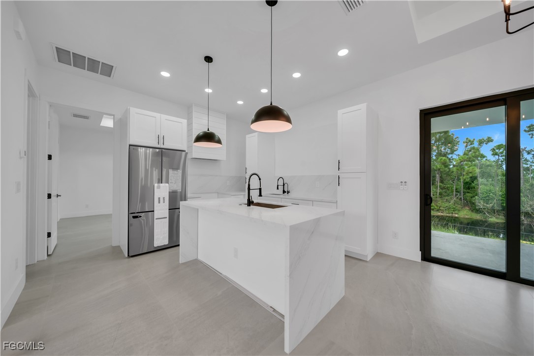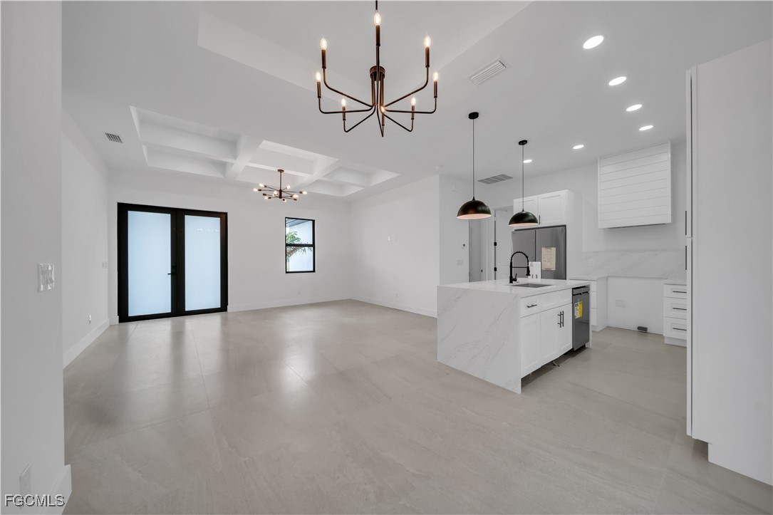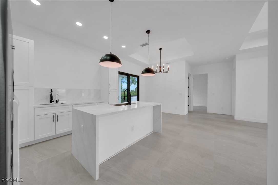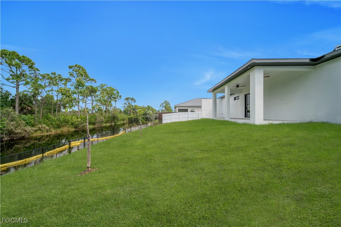SELLER WILL CONTRIBUTE TOWARDS BUYERS CLOSING COSTS! Do not miss the opportunity to live in this beautiful Newly Built single-family home located in the much desired & family-oriented Cape Coral neighborhood! This light & airy 3 bedroom , 2 bathrooms, 2-Car Garage, high ceilings, open floor plan, Impact Windows (best quality in Florida), 8'ft interior doors, kitchen with modern appliances, center island with waterfall edge & custom range hood, porcelain floors thru-out, covered patio with fully fenced with a privacy fence with enough room to build your own resort-styled custom pool. This is a Must-See Beautiful Home! Ready to Move-In!!