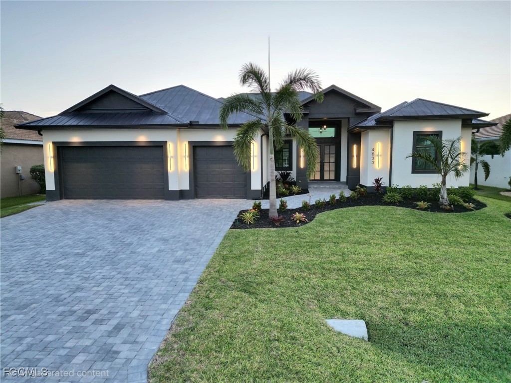 Discover an extraordinary opportunity to own a meticulously crafted waterfront estate in one of Southwest Florida's most coveted locations. This brand-new custom-built luxury home offers Gulf access, positioning you minutes from world-class boating, fishing, and the pristine waters of the Gulf of Mexico. Designed for the discerning buyer seeking both opulence and functionality, this architectural masterpiece seamlessly blends contemporary elegance with resort-style amenities, making it ideal for sophisticated family living, premier vacation rental investment, or exclusive corporate entertaining. This exceptional four-bedroom, four-bathroom residence showcases nearly 2,700 sqft of thoughtfully designed living space, featuring soaring 13-foot ceilings in the main living areas that create an impressive sense of grandeur and openness. Throughout the home, you'll find premium 48"x48" large-format porcelain tile flooring, custom European MDF wall panels, and an attention to detail that exemplifies true luxury craftsmanship. The main living area is enhanced by an elegant atomizing fireplace, creating a stunning focal point that adds ambiance and sophistication to your entertaining space. The gourmet chef's kitchen serves as the heart of the home, complete with high-end appliances, a spacious walk-in pantry, an elegant wine display unit, and a dedicated coffee bar—perfect for entertaining guests or enjoying quiet morning moments overlooking your private waterfront oasis. The private master suite offers a serene retreat with 11-foot ceilings, a spa-inspired ensuite bathroom featuring dual rainfall shower heads, and an expansive walk-in closet with custom organizational systems. Every bedroom has been designed with comfort and privacy in mind, while the thoughtfully appointed laundry room and abundant storage solutions ensure effortless daily living. The expansive three-car garage provides ample space for luxury vehicles, watercraft storage, and recreational equipment. Step outside to your own tropical paradise, where a custom-designed heated pool and spa await, surrounded by elegant travertine pavers and enclosed with premium picture-window screens that frame breathtaking water views while maintaining comfort year-round. The professionally designed summer kitchen creates an ideal setting for alfresco dining and sunset entertaining. Built to withstand Florida's climate with hurricane-impact glass throughout and a durable metal roof, this home offers both peace of mind and long-term value. The recently installed seawall (2023) provides excellent deep-water access with ample space for a custom dock, accommodating multiple vessels. This stunning waterfront estate represents a rare opportunity to secure a premier property in Southwest Florida's competitive luxury market. Whether you're seeking a private family compound or a sophisticated investment property, this home delivers uncompromising quality and the coveted Florida lifestyle.