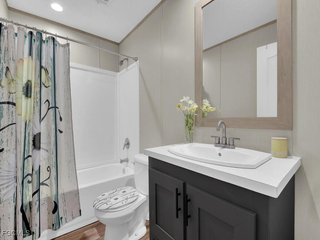 Located just outside the heart of LaBelle, this newly built 2024 manufactured home offers 3 bedrooms and 2 bathrooms on a spacious one acre lot. The interior is bright and inviting with modern laminate floors and an open kitchen featuring bar seating and contemporary cabinetry. Step outside to enjoy peaceful evenings on the patio overlooking mature trees and a private, wooded backdrop. The property is dotted with fruit trees and provides plenty of room for outdoor activities, gardening, or simply relaxing in the quiet setting. With simple, low-maintenance landscaping and a perfect blend of modern design and rural charm, this home is an ideal retreat for anyone seeking the comfort of new construction in a tranquil country atmosphere.