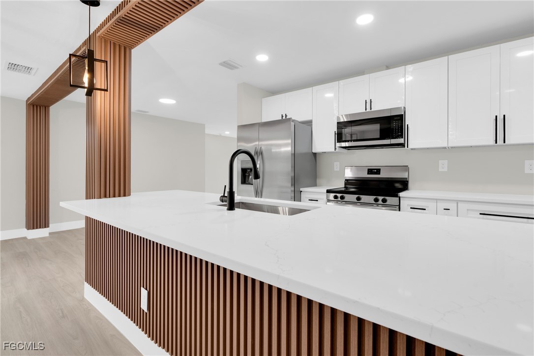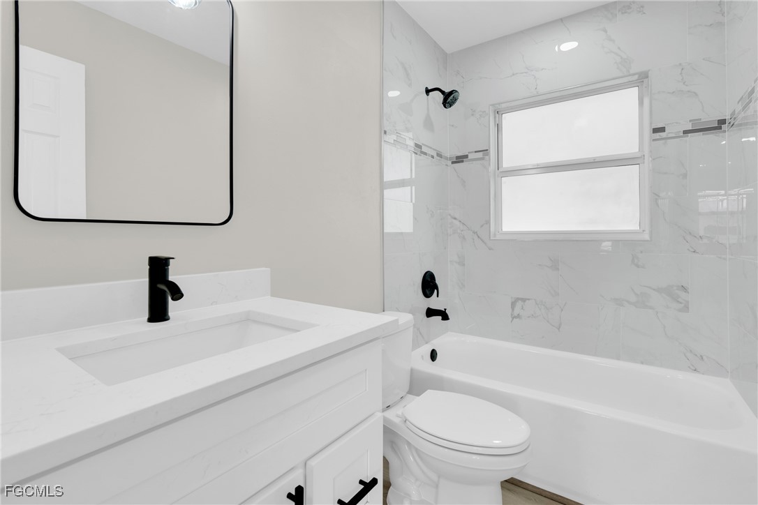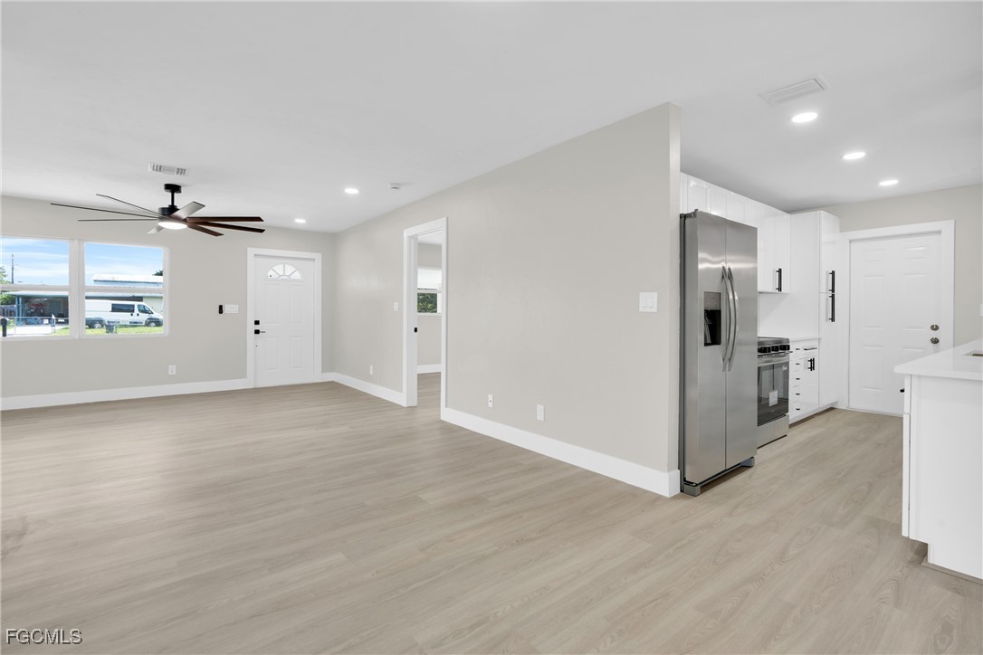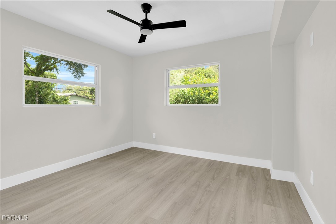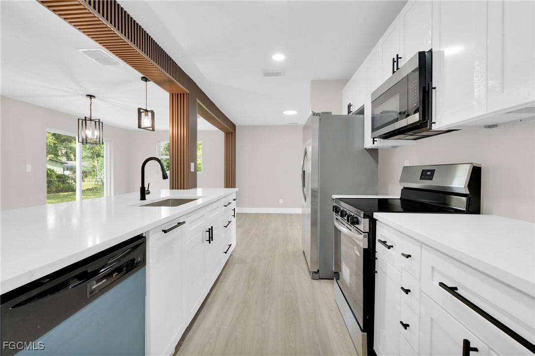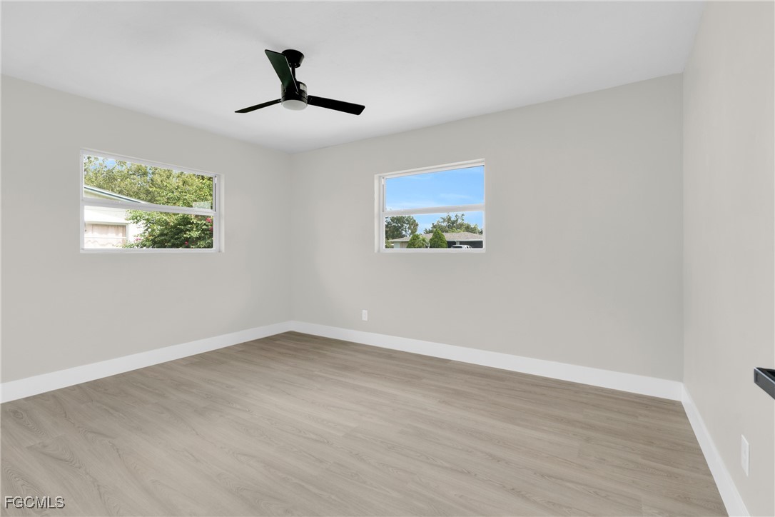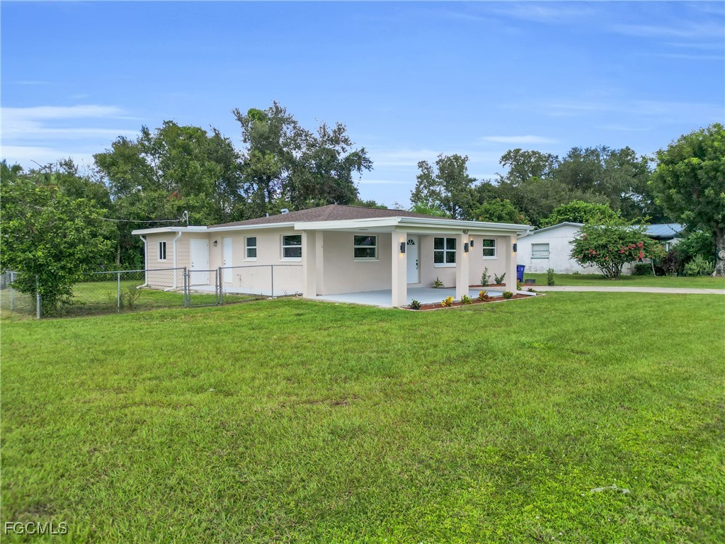 Welcome to a beautifully renovated home nestled in a quiet, established neighborhood in Fort Myers.This move-in-ready residence seamlessly blends modern upgrades with timeless charm, offering the perfect retreat for families, first-time buyers, or savvy investors. Step inside to find a bright, open-concept living space featuring fresh paint, luxury wood plank tile flooring, and abundant natural light throughout. The brand-new kitchen is a true showstopper—complete with custom cabinetry, quartz countertops, well equipped with brand new stainless steel appliances, and stylish column with panel decor. Whether you're cooking or entertaining, this space is designed to impress! On the exterior, situated in a large corner lot, New paint on the exterior, brand new lighting fixtures, brand new impact windows, On the patio you'll find a generously sized backyard fenced—ideal for outdoor living, weekend BBQs, or even a future pool. The home offers 3 spacious bedrooms and 2 updated bathrooms with modern fixtures and finishes. Enjoy peace of mind with recent upgrades including a new roof, electrical, and plumbing. A separate laundry room with new water heater, lighting and hurricane impact windows throughout the whole house. There is no flood insurance required, Not in a flood zone. NO HOA or restrictions. This is the perfect home for a family with tons of space.Conveniently located just minutes from I-75, downtown Fort Myers, shopping, dining, and Gulf Coast beaches, offers the best of Florida living in a fully updated package.