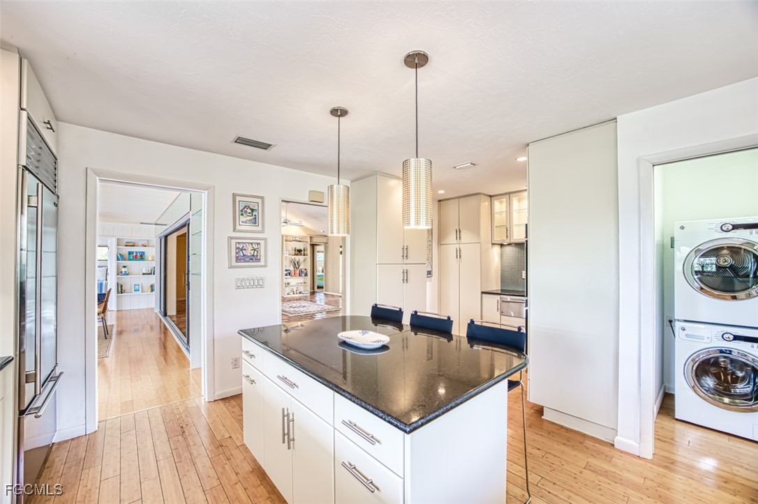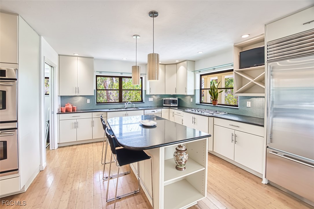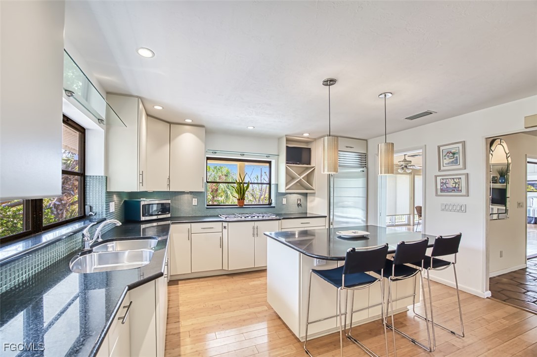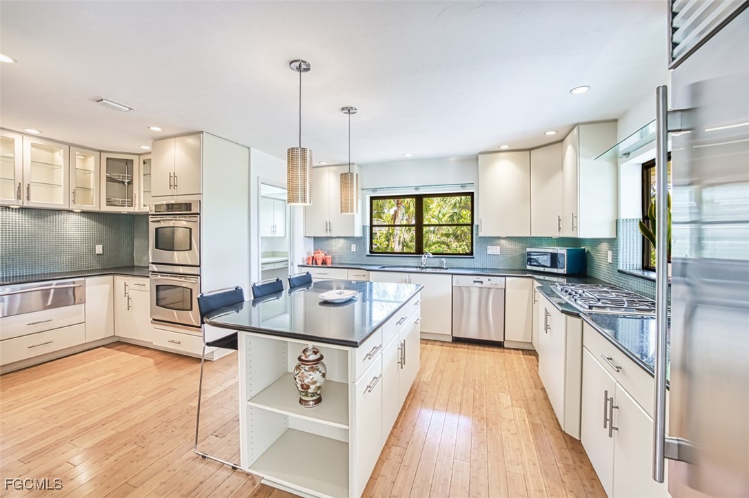 Just a short stroll down a private beach path to stunning Bowman’s Beach, this beautifully elevated island retreat offers peace and privacy on a quiet cul-de-sac surrounded by lush tropical foliage. Enjoy soaring vaulted ceilings and an enclosed lanai/sunroom with glass sliders—perfect for breezy island evenings. At the heart of the home, a chef's kitchen features a Bosch dishwasher, Sub-Zero refrigerator, double ovens, gas cooktop, and pantry. Three bedrooms and three baths include a private en suite guest room. Western-exposure front porch for unforgettable sunsets. Recent updates include a new roof (2023), newer A/C, and new water heater (2025). Bonus lower-level space ideal for office or rec room. Move-in ready with generous storage and two garage bays. Beautiful community pool and tennis courts just steps from home. A rare opportunity to own in one of Sanibel’s most desirable locations.
