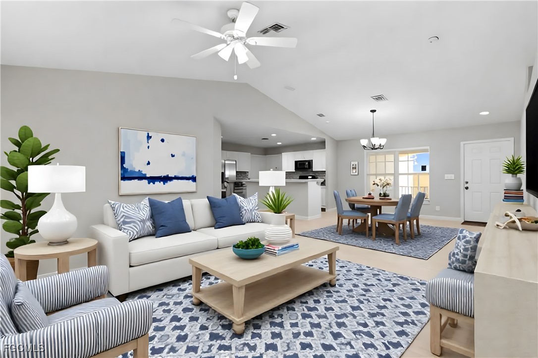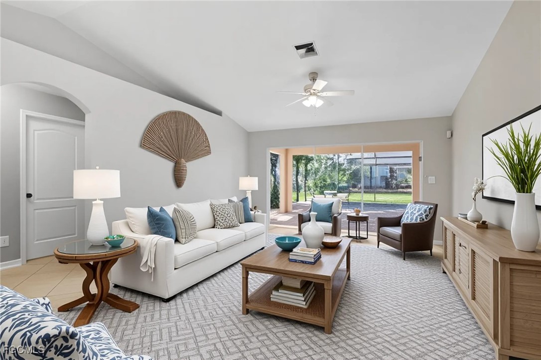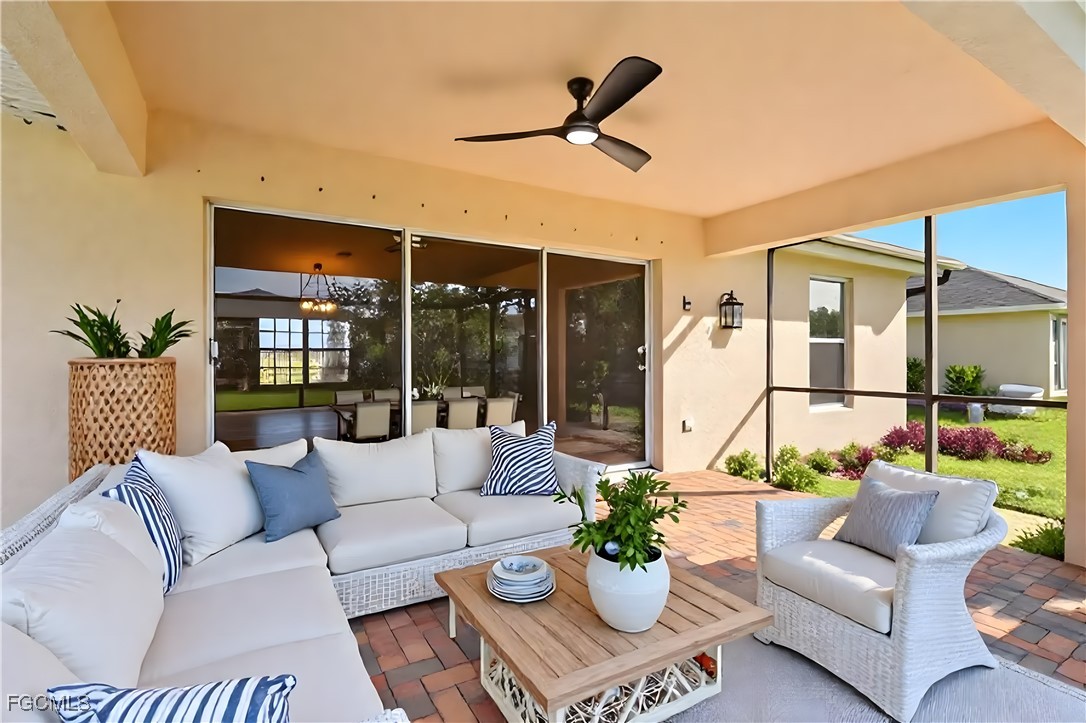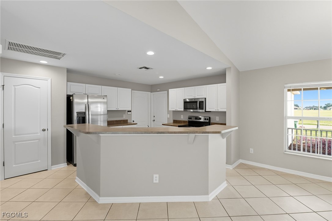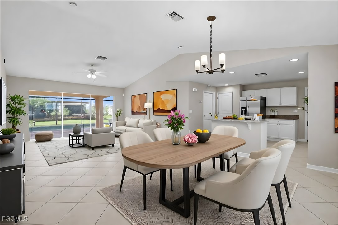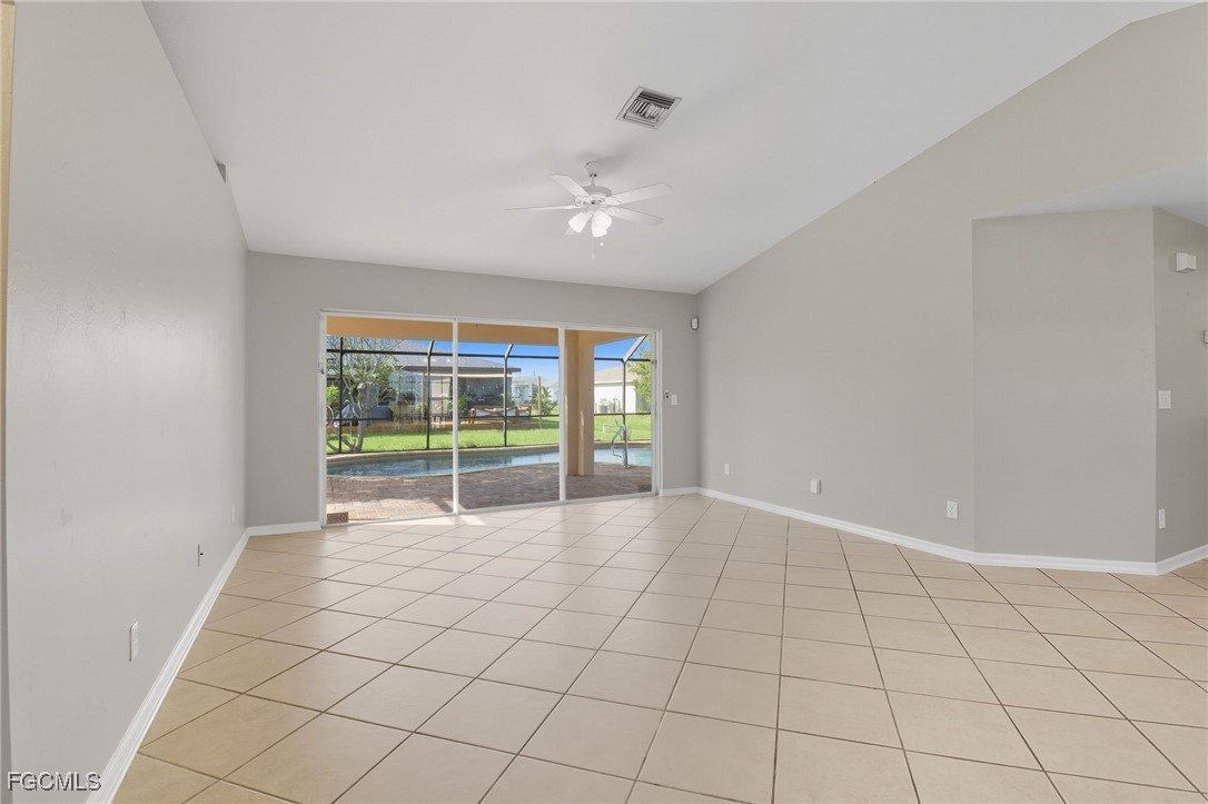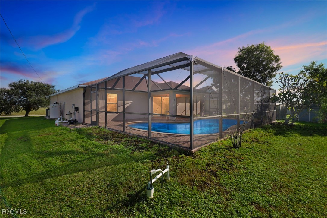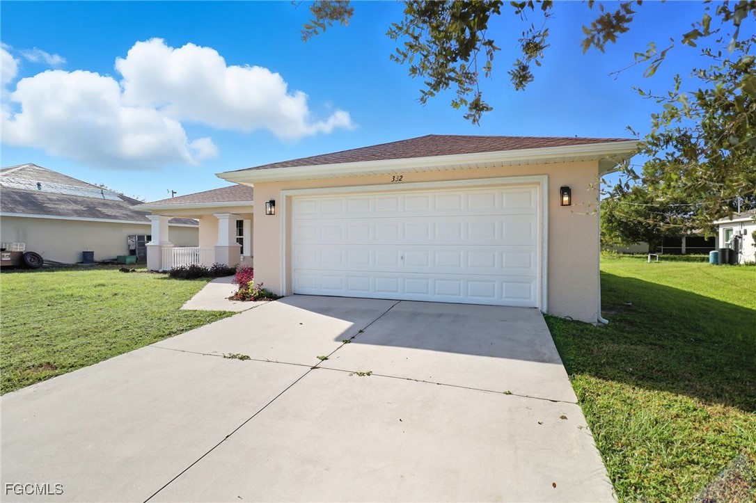 Welcome to this Sunny Cape Coral Pool Home, move in ready and waiting for you to start making memories. Enjoy a stunning pool beautifully enhanced by a paver patio and lanai. You'll enjoy both shade and sun space with plenty of room to entertain, grill, relax and swim. Head inside to a crisp and inviting open concept home. This updated kitchen features white trim and cabinets along with ample counter space for meal prep and projects. There are stainless appliances, a pantry area, and a center island with breakfast bar which is the perfect segue to the living and dining room area. This home was made for friends and family, celebrations, quiet dinners and daily routines. All 3 bedrooms have luxury vinyl plank flooring while the main home has tile. Two full bathrooms ensure privacy and a conveniently located laundry room makes keeping up with the wash a whole lot easier. A 2 stall garage keeps your cars out of the sun and has room for sports equipment or tools. Welcome home!