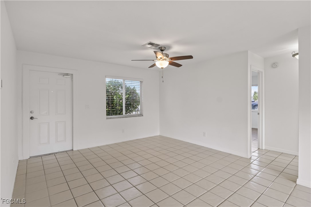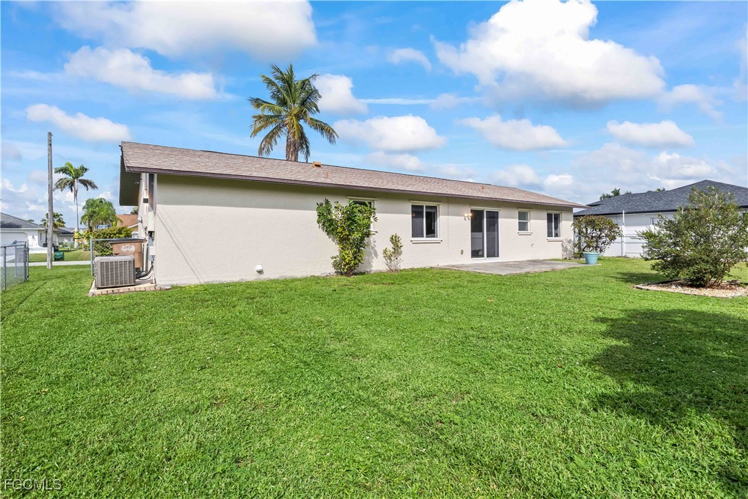 Move-In Ready SW Cape Coral Home and No Flood Zone! This clean and well-maintained 3 bedroom, 2 bath home is concrete block construction with major updates already done for you! Enjoy peace of mind with a new roof (10/2021), new water heater (8/2025), and a York A/C system (8/2020) that includes a 10-year transferable warranty (parts and labor). The home was re-plumbed in 2016, and no insurance claims have ever been filed. All city water and sewer assessments are paid in full, and the home sits in a NO flood zone with NO HOA fees, ideal for peace of mind and long-term savings. Inside, you’ll find all-tile flooring throughout, stainless steel appliances (including washer and dryer), and hurricane shutters for full protection. The fenced backyard features a gate on the north side, perfect for boat or trailer parking, with plenty of room to add a pool. Located in the heart of the SW Cape, just south of Veterans Pkwy off Skyline Blvd, minutes to Cape Coral Pkwy, downtown Cape Coral, and both the Midpoint and South Bridges for quick access to Fort Myers. Perfect for a small family, retirees, or investors, this home delivers solid value, excellent location, and low maintenance living. PRICED RIGHT, don’t miss this opportunity!