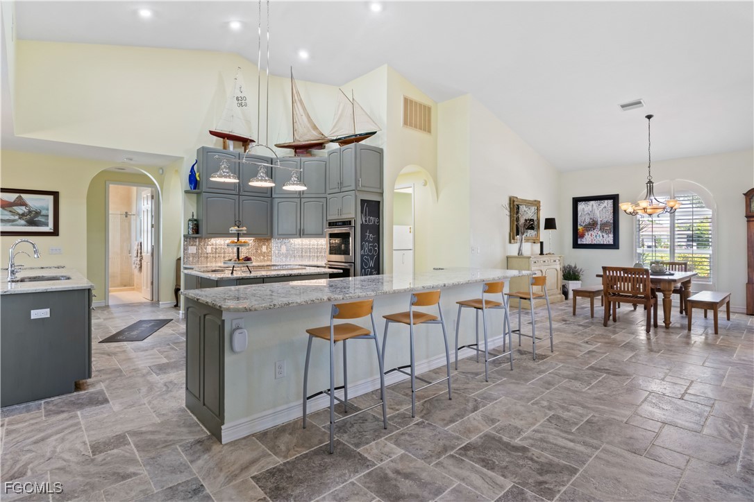 Welcome to 2853 SW 47th Terrace, a stunning 3-bedroom plus den, 3,694 sq. ft. Gulf-access home showcasing direct, no-bridge boating access on the Spreader Canal—offering quick travel to open water and the pristine Gulf of Mexico. Built in 1990 and thoughtfully modernized, this home blends solid craftsmanship with contemporary luxury. Inside, enjoy travertine tile flooring throughout, granite countertops, and stainless steel appliances (2018) that complement a warm, open-concept kitchen and living area perfect for entertaining. The master suite, updated in 2023, provides a tranquil retreat with elegant finishes and direct lanai access. The main A/C system (2018) receives professional servicing twice yearly through Mr. Cool Maintenance, and new water heaters (2025) ensure lasting comfort and efficiency.