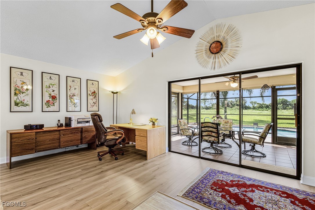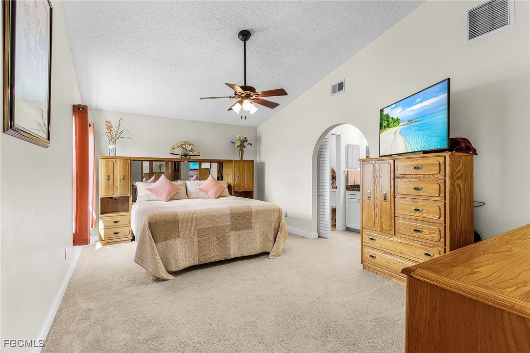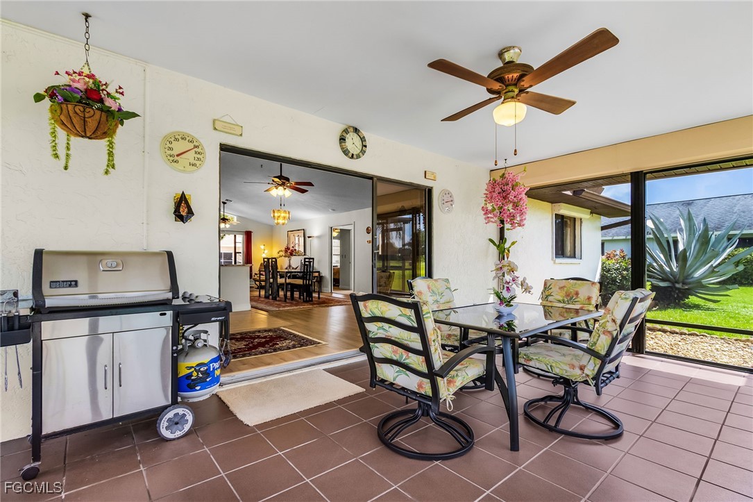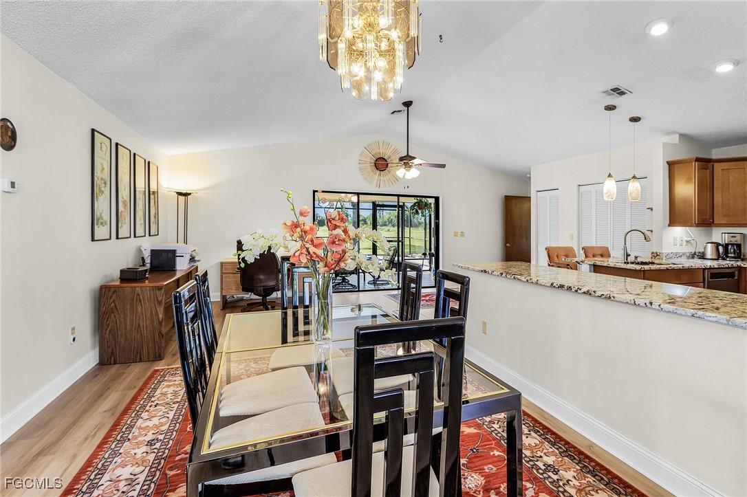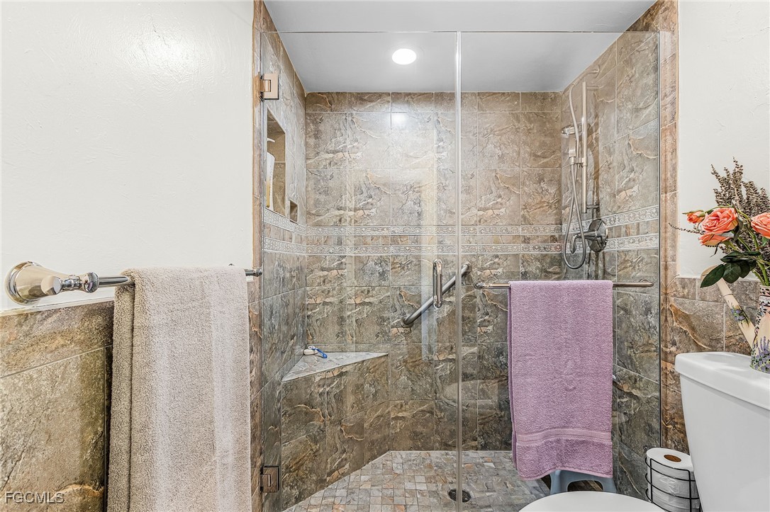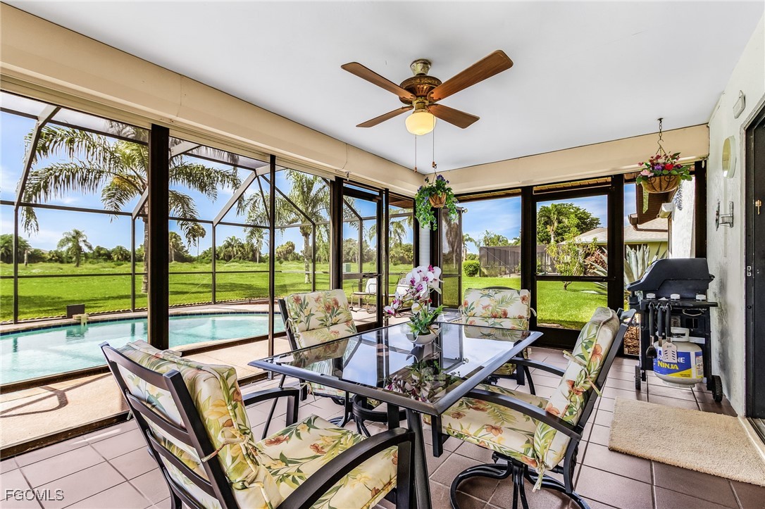Here is a great opportunity to live in this spacious 3 Bedroom, 2 Bath home with so many upgrades including a new roof (2022) where you can just move in and start to enjoy your new life. As you enter you will feel the soaring vaulted ceilings which enhance the main living area with Vinyl Coretec flooring, that leads to the Kitchen with incredible upgrades: Custom-designed soft close cabinetry, large granite countertops, tile floors, recessed lighting, breakfast bar lights, plus newer appliances and a large pantry with an additional storage closet. Carpeting has been added to all bedrooms with complete remodels of both bathrooms. The garage includes the Laundry with Maytag appliances, newer hot water heater (serviced 2024) plus attic stairs creating more storage space. The Lanai area has a large covered and screened space for outdoor entertaining with an additional screened pool area making this a unique home feature. There are many exterior upgrades: Newer irrigation well pump, hurricane shutters on south-facing bedrooms, Trane 3-ton HVAC system (serviced 2025) and new pool pump (2024). For your peace of mind, there is a Generac whole home generator running off propane (serviced March 2025) and new backyard drainage system with French drains. This home has a manicured landscape including large Blue Agaves and various fruit trees (Avocado, Peach, Banana and Blueberry). This lovely home is located close to Rte 82 for easy access to I-75 and less than 30 minutes to SW Florida Int’l Airport. In addition, this neighborhood in Lehigh has an elevation in Lee County that does not require flood insurance, another plus to making this your next Home.