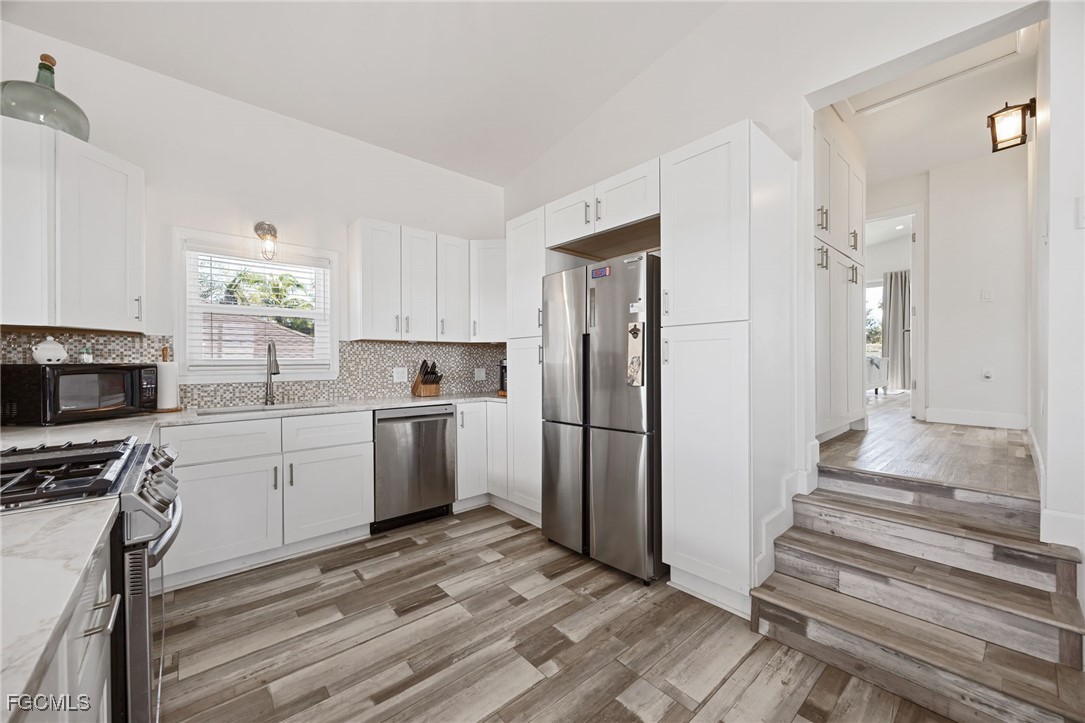 This beautifully remodeled 2-bedroom, 2.5-bath waterfront POOL home offers the perfect blend of upgrades and coastal living. Located just minutes from open water, it’s ideal for boating enthusiasts and anyone who loves the Florida lifestyle. The home features 1,200 sq. ft. upstairs and an additional 650 sq. ft. of air-conditioned living space downstairs with a convenient powder room. Every detail has been thoughtfully updated, including a new roof in 2023, new hurricane-rated windows and doors, and new plumbing and electric throughout. The interior remodel includes all new countertops, sinks, tile showers, a bath/shower combo, fixtures, and beautiful new flooring. The kitchen has been upgraded with a new gas range, refrigerator, and dishwasher (2024), creating a bright and functional space that’s perfect for entertaining or everyday living. Step outside and enjoy your new saltwater pool (2025), a new composite deck (2024), and a new dock with lift and seawall (2020). A 1,000 lb. outdoor mechanical lift, 30 amp plug, and pump/dump station for an RV make this property exceptionally versatile. There is also plenty of parking for boats, RVs, and cars, making it easy to enjoy the water and the outdoors. The home includes new AC with three mini splits (2023), new sod and fencing (2025), and new garage doors (2024). The downstairs features enclosed walls with Durarock on the bottom four feet for extra durability, and the exterior has pressure-treated shadow boxing custom rails. With a transferable flood policy ($2,000), this home offers peace of mind and ease of ownership. Furniture is negotiable, making this truly turnkey and move-in ready. Every upgrade has been completed so you can simply relax and enjoy your waterfront paradise.