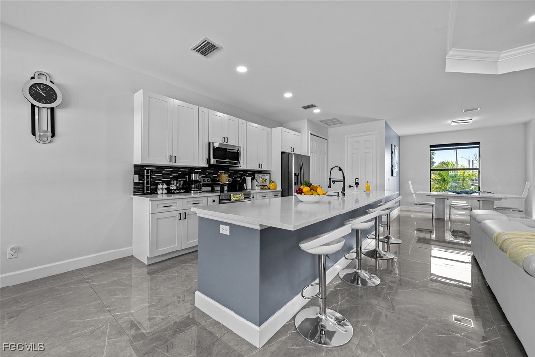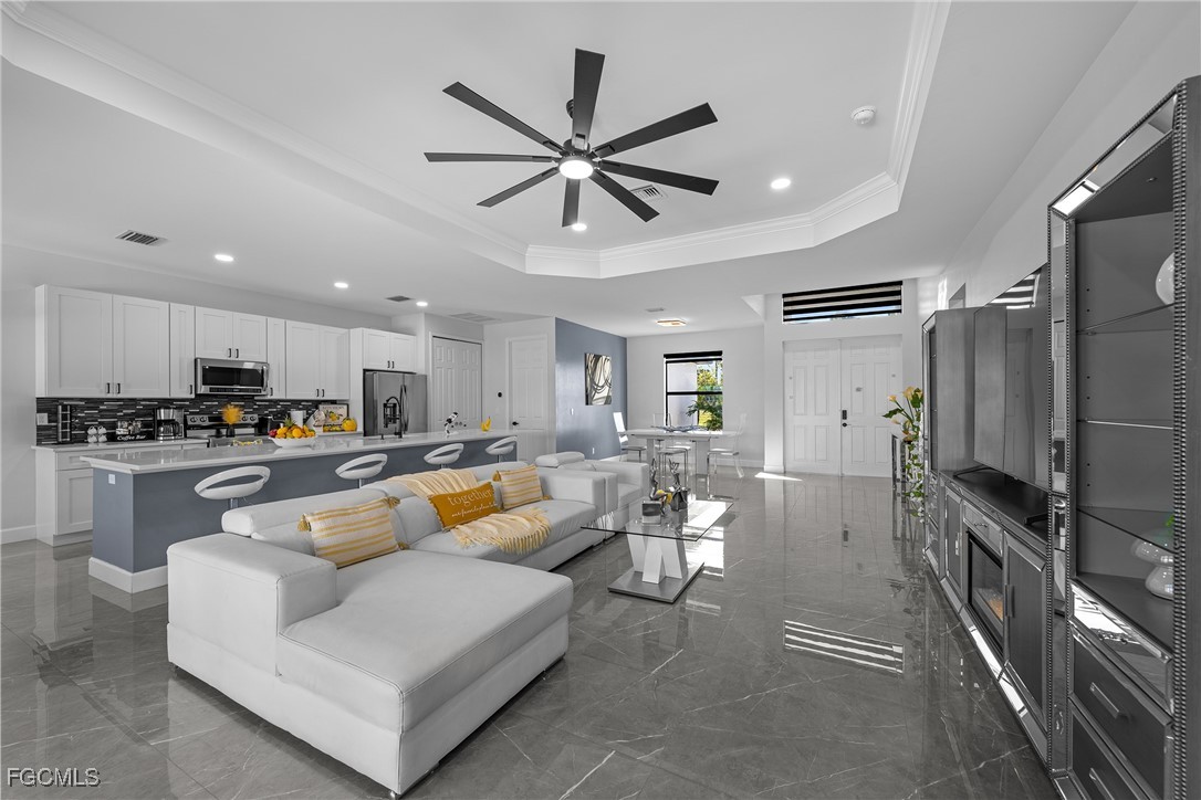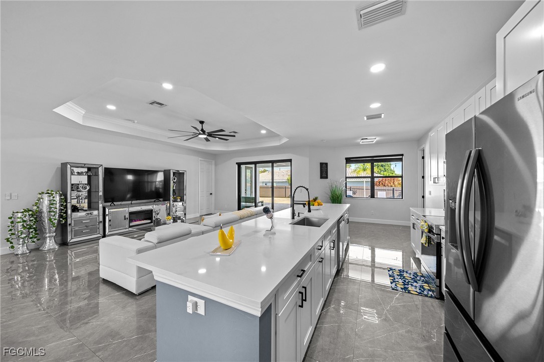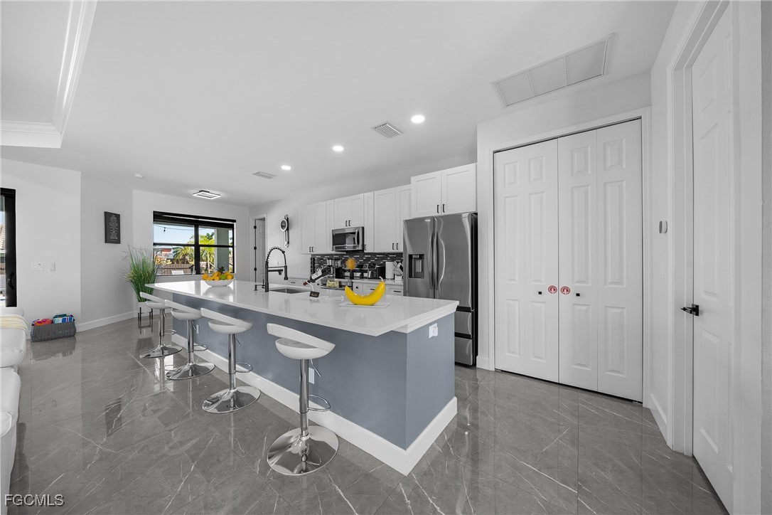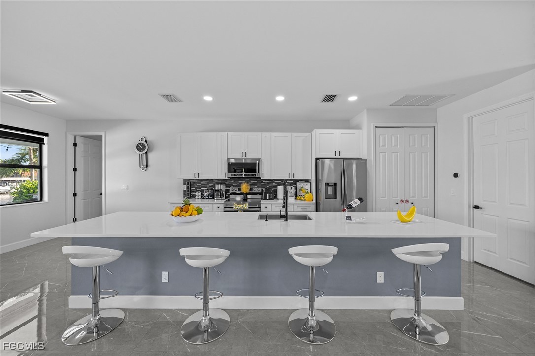 Welcome to 2419 Country Club Blvd in Cape Coral — a sophisticated, custom-built 2024 residence that masterfully blends luxury, resilience, and resort-style outdoor living. Situated on an oversized 0.36-acre lot, this 4-bed/3-bath floor plan delivers a spacious layout with split bedrooms, generously sized living and dining areas, and a dream chef’s kitchen showcasing a dramatic quartz island and matching quartz countertops. Inside, you’ll find exquisite custom showers and a seamless flow accented by impact-rated hurricane doors and windows throughout as well security system covering the property for peace of mind. Step outside to your own private oasis: a stunning 14 × 30 pool which is showcased by custom tile around it, a fully equipped outdoor kitchen for al fresco entertaining, and lush landscaping offering both beauty and privacy. And when you want to venture out, you’re just minutes from pristine beaches and barrier islands, a vibrant selection of shops, top-tier restaurants, medical centers, and entertainment options — all within easy reach yet worlds away from the ordinary. Come and get a slice of our paradise and enjoy the best Florida has to offer.