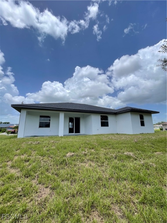 New construction featuring 3 bedrooms, a den, 2 bathrooms, and a spacious open floor plan filled with natural light. Highlights include a jumbo-sized kitchen island, white cabinetry, quartz countertops, and stainless steel appliances. The primary suite offers dual walk-in closets and a walk-in shower. Porcelain tile throughout, plus a separate indoor laundry room for added convenience. Enjoy a covered lanai, landscaped yard, and large backyard—perfect for entertaining. 2-car garage and 1-year builder warranty included. Move-in ready!