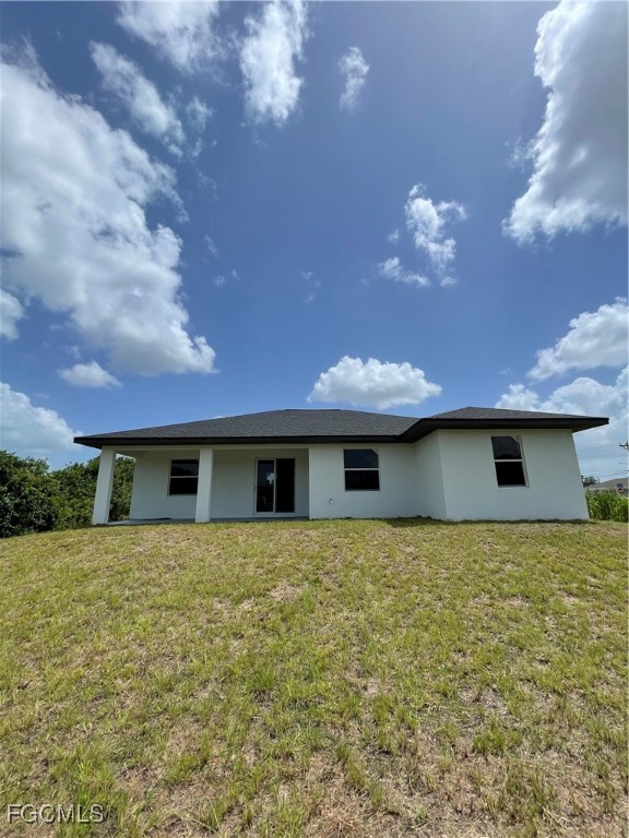 New construction featuring 3 bedrooms, a den, 2 bathrooms, and a spacious open floor plan filled with natural light. Highlights include a jumbo-sized kitchen island, white cabinetry, quartz countertops, and stainless steel appliances. The primary suite offers dual walk-in closets and a walk-in shower. Porcelain tile throughout, plus a separate indoor laundry room for added convenience. Enjoy a covered lanai, landscaped yard, and large backyard—perfect for entertaining. 2-car garage and 1-year builder warranty included. Move-in ready!