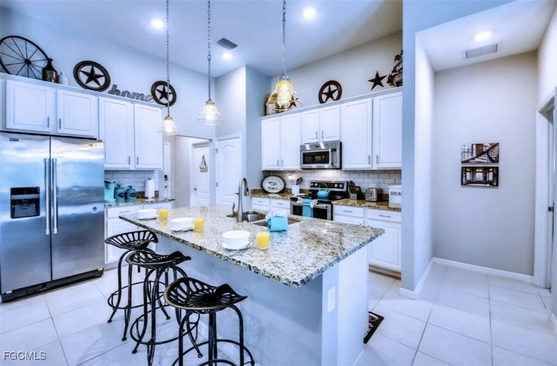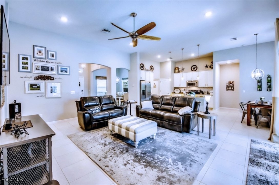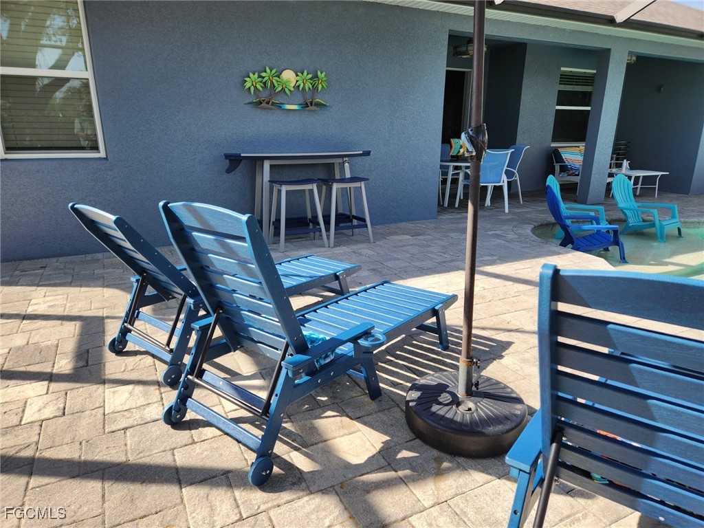 NOT IN A FLOOD ZONE! NO FLOOD INSURANCE REQUIRED! Step into this beautiful 4 bedroom + den pool home nestled in one of the most desirable family friendly neighborhoods in Cape Coral, Florida! Large open floorplan with plenty of room for a growing family or investment property. This home has an extensive "Airbnb" type vacation rental history, if you are thinking about your next investment or if you prefer to move right in, it is ready for you! Sold turnkey, this home has everything you have been dreaming of. Large paver pool deck with oversized patio area for entertaining, pool with sun shelf to dip your toes in the water while soaking up the sun. Each of the bedrooms are oversized, each having access to their own bathroom. Huge walk-in closet in the primary bedroom, great workspace kitchen with granite counters and lots of cabinets with a spacious island for cooking and get togethers. Eat in kitchen plus additional formal dining room for big families. This home has everything you are looking for, in an area that is close to dining, shopping and night life at Cape Harbour Marina. Lots for the kids to do, parks, schools and recreational fun. Quiet neighborhood close to Veterans for your travel commute. Walking distance to Lowes and Target plus all the dining you can wish for! All furnishings included, new lounge chairs for your relaxation, everything down to silverware, just bring your toothbrush and flip flops!