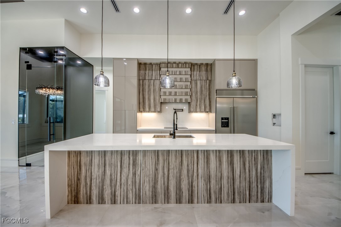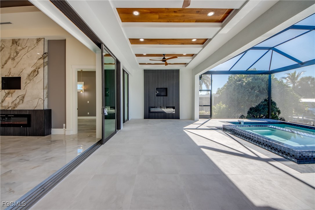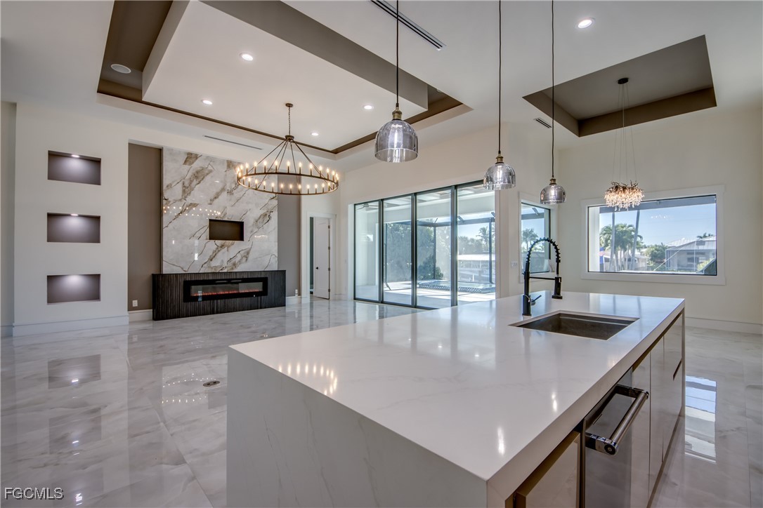 GULF ACCESS, CUSTOM DESIGN, NEW CONSTRUCTION, AND JUST COMPLETED! This 4 Bed + Den, 4 Full Bath and 2 Half Bath, 3 Car Garage (With a 12' and 10' High Garage Doors) Gulf Access home comes with all the Bells and Whistles. First the interior - The Kitchen has been decked out with High End Cabinetry, Stainless Steel Appliances with 48" fridge, Built in Wall Oven and Cooktop, High End Countertops and a huge Kitchen Island with Waterfall Edge. A Hidden Pantry with additional cabs and storage is the perfect added touch! Designer tile floors are installed Everywhere - Floors, Bathrooms, Showers - the works! A Wine and Wet Bar just off the living room, Indoor Fireplace, Frameless glass Enclosures in all Baths, Custom ceilings Living Room, Island, Den, Dining Room and Master Bed, Speakers already installed and wiring for camera system. The Exterior doesn't disappoint either - Metal Roof, Outdoor Kitchen, Outdoor Fireplace, Huge Pool/Spa/Sun Deck with Full Length Lanai with Paver Deck, Outdoor Fire Pit area with additional paver and planting area, Paver Driveway, Impact Windows and 10' Impact Slider Doors, Epoxy Garage Floor with a 26' deep garage! Best of all, a short boat ride out to the river with no Bridges! Don't wait 2 years for custom homes to be built - this one is ready to go! Assessments are in and Paid!