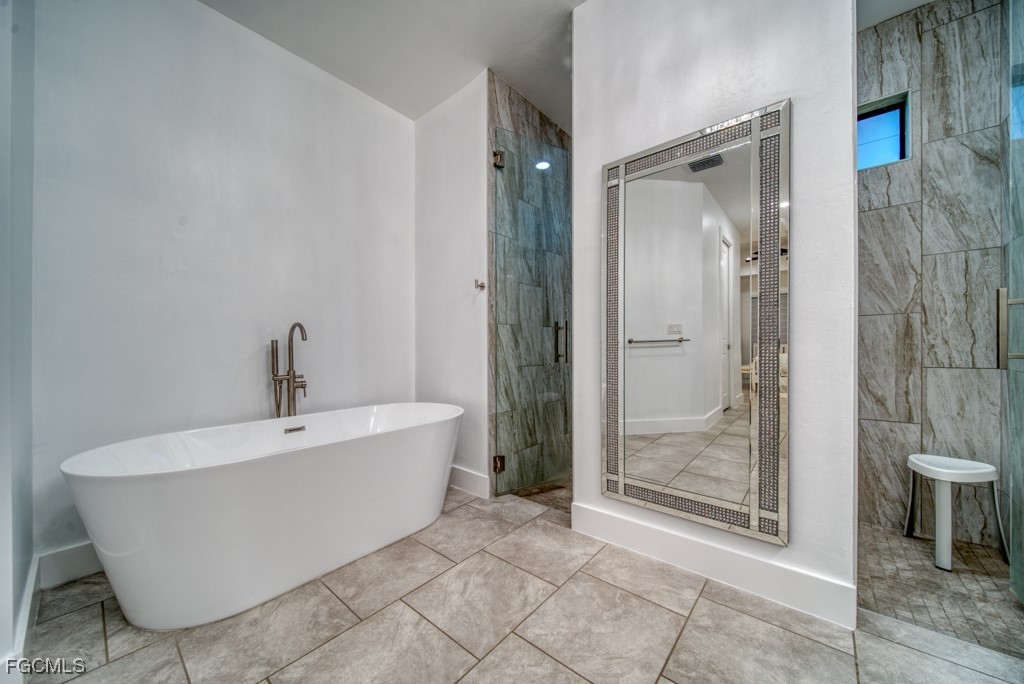The main bedroom offers private direct access to the pool area through elegant French doors. The ensuite bathroom features a car-wash–style walk-through shower, a separate soaking tub, and dual vanities for ultimate luxury.
