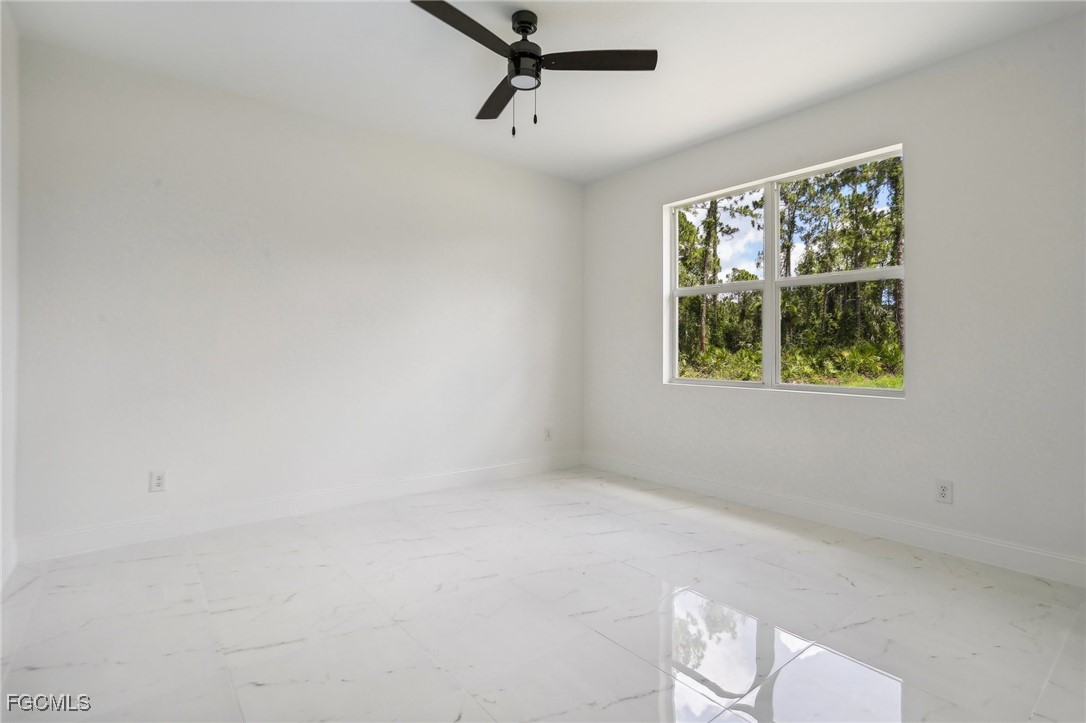 $10,000 Seller concessions towards buyer closing costs and prepaids. This newly constructed home in the desirable 33971 ZIP code offers the best price per square foot in all of Lehigh Acres. Situated at 2806 10th st W, this property is designed for comfort and durability, built on an elevated pad to prevent flooding. Featuring 3 bedrooms + a den, 2 bathrooms, and an open floor plan with soaring 9-foot ceilings and 10-foot vaulted accents, this home is filled with natural light and modern finishes. Enjoy polished Venato porcelain tile flooring throughout, impact-resistant ECO WINDOWS, and sleek white quartz countertops in the kitchen. The spacious master suite boasts two walk-in closets and a luxurious freestanding shower with dual sinks. For peace of mind, the seller—who is also the developer—includes a 2-10 Home Builders Warranty (including a 7-year structural warranty). With easy access to I-75, this home is just minutes from Fort Myers, Southwest Florida International Airport, and the stunning beaches of Sanibel & Captiva Islands. This home is ready for immediate move-in and a quick closing. Schedule your showing today!