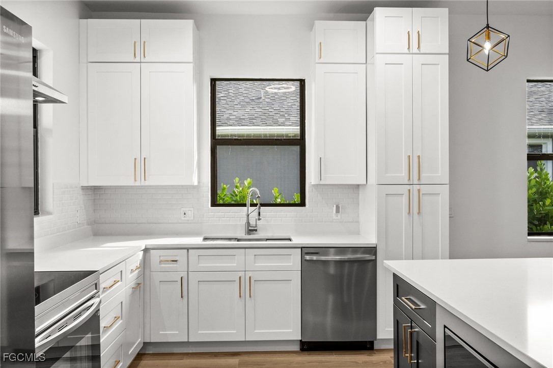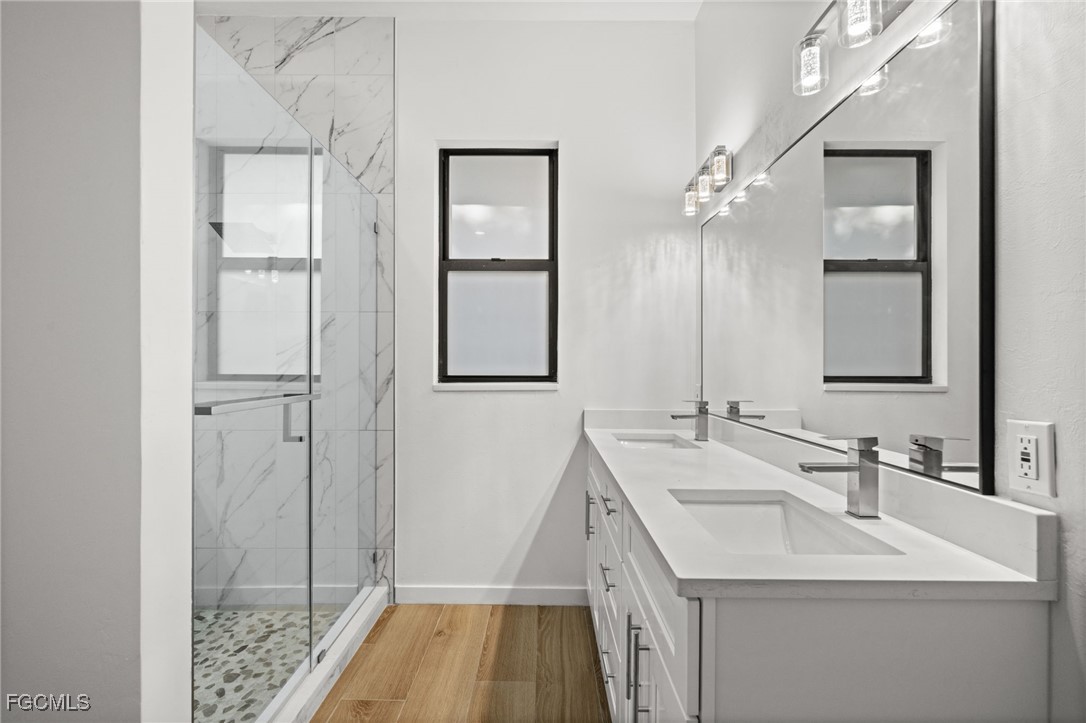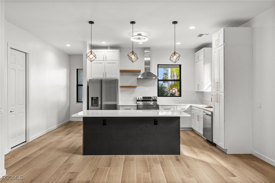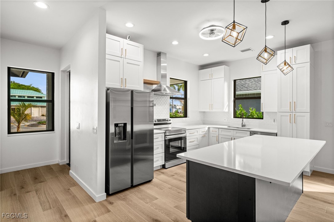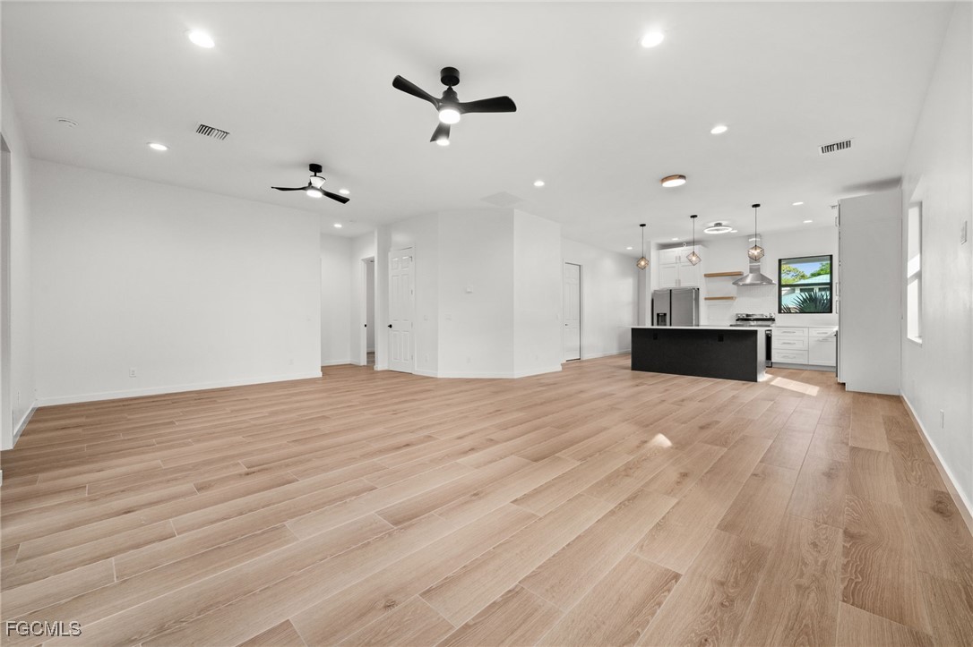 New construction in the heart of Fort Myers! This thoughtfully designed home offers 3 bedrooms, 2.5 baths, over 1,700 square feet under air, and a 2-car garage. From the moment you enter, you’ll appreciate the quality craftsmanship and attention to detail, highlighted by wood-look tile flooring, soaring 10-foot ceilings, and a bright, open layout filled with natural light. The kitchen is both stylish and functional, perfect for everyday living and entertaining alike, featuring quartz countertops, a large prep island, Samsung stainless steel appliances, tile backsplash, floating shelves, and striking pendant lighting. The spacious primary suite includes private lanai access and an elegant en-suite bath with a glass-enclosed shower, dual vanities, and a walk-in closet. Additional highlights include impact-resistant windows and doors, Flood Zone X (no flood insurance required), and no HOA fees, offering peace of mind and financial flexibility. Ideally located just minutes from the Historic River District of downtown Fort Myers and the iconic Ford & Edison Winter Estates, with easy access to dining, shopping, culture, and entertainment. 1916 Jefferson Avenue delivers modern construction, quality finishes, and a prime central location. This is an exceptional opportunity to own new in Fort Myers.